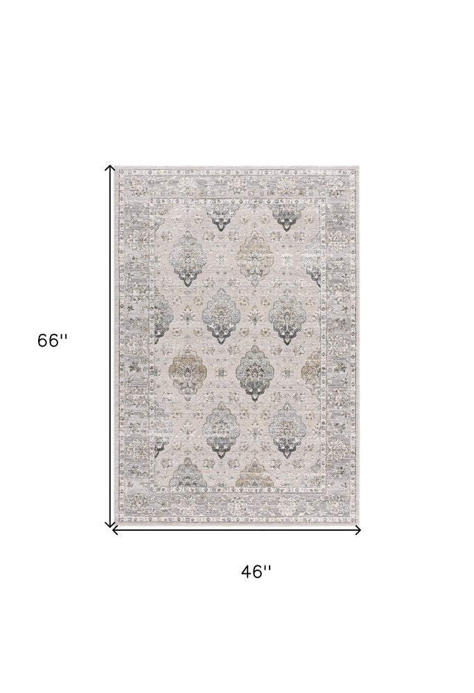 4' X 6' Gray Oriental Washable Non Skid Area Rug
