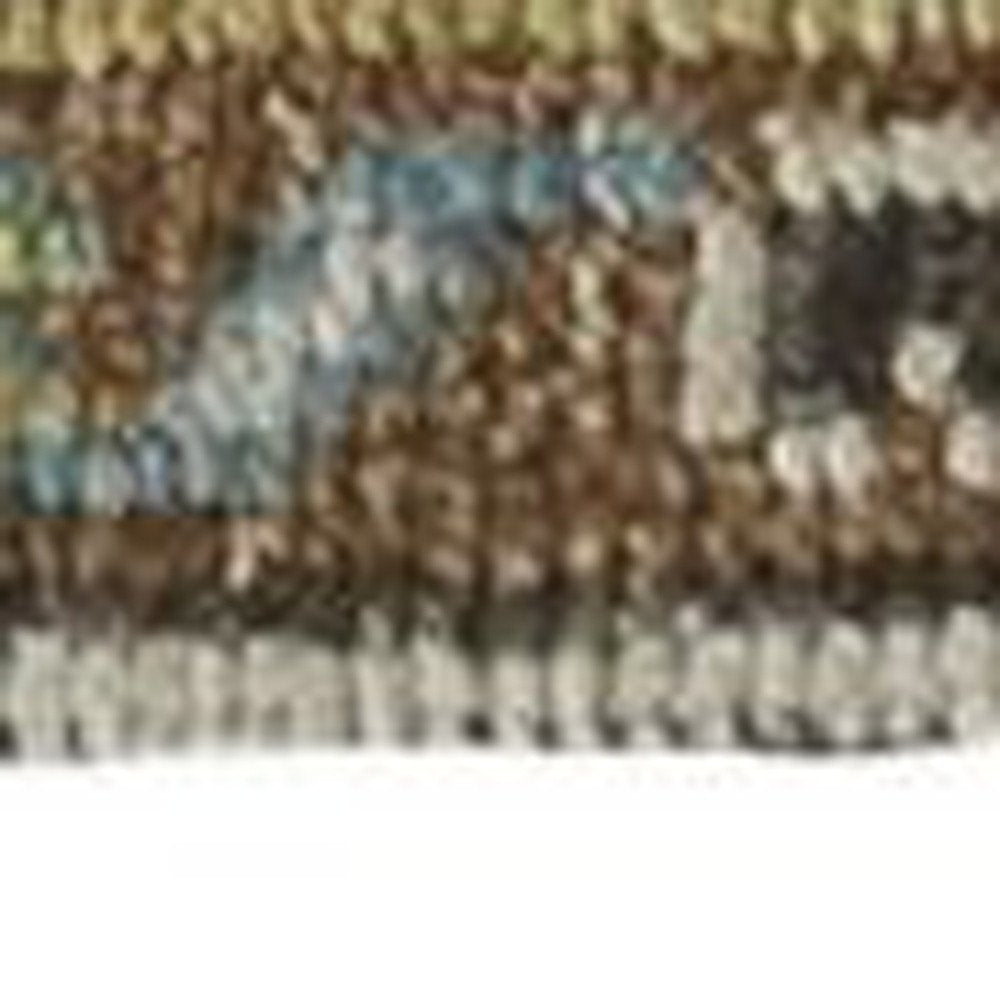 8' Green and Ivory Wool Floral Hand Knotted Distressed Runner Rug With Fringe