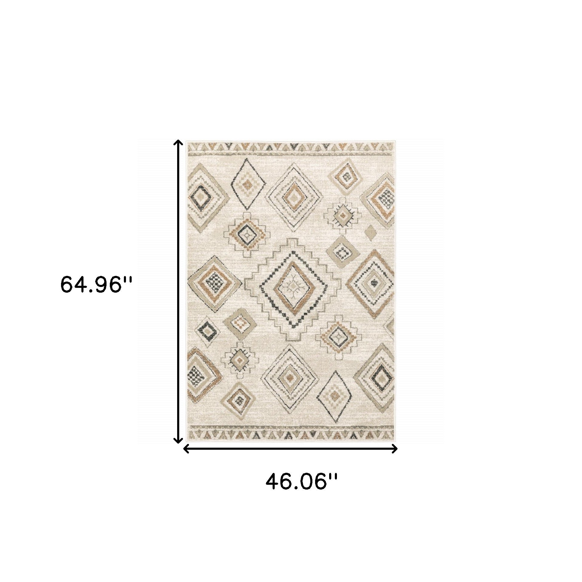 4' X 6' Ivory Orange Tan Black And Grey Southwestern Power Loom Stain Resistant Area Rug