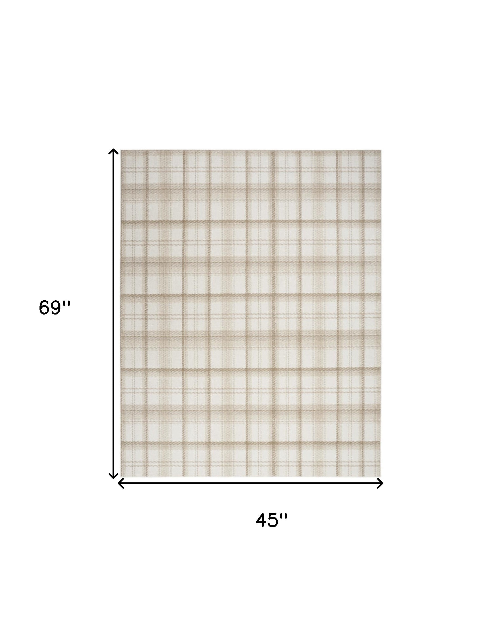 Add some artistry to your room with this 4-foot x 6-foot ivory plaid power loom area rug. This rectangle shaped rug features a plaid design in ivory to give it visual interest. A classic shape marries with good looking design for your space the coloring of this rug adds a delightfully neutral tone to your home and will easily match with most any decor. Place this area rug against a hardwood or tile floor and it will enliven your living space with style and sophistication. 45-inch H x 69-inch W x 0.5-inch D