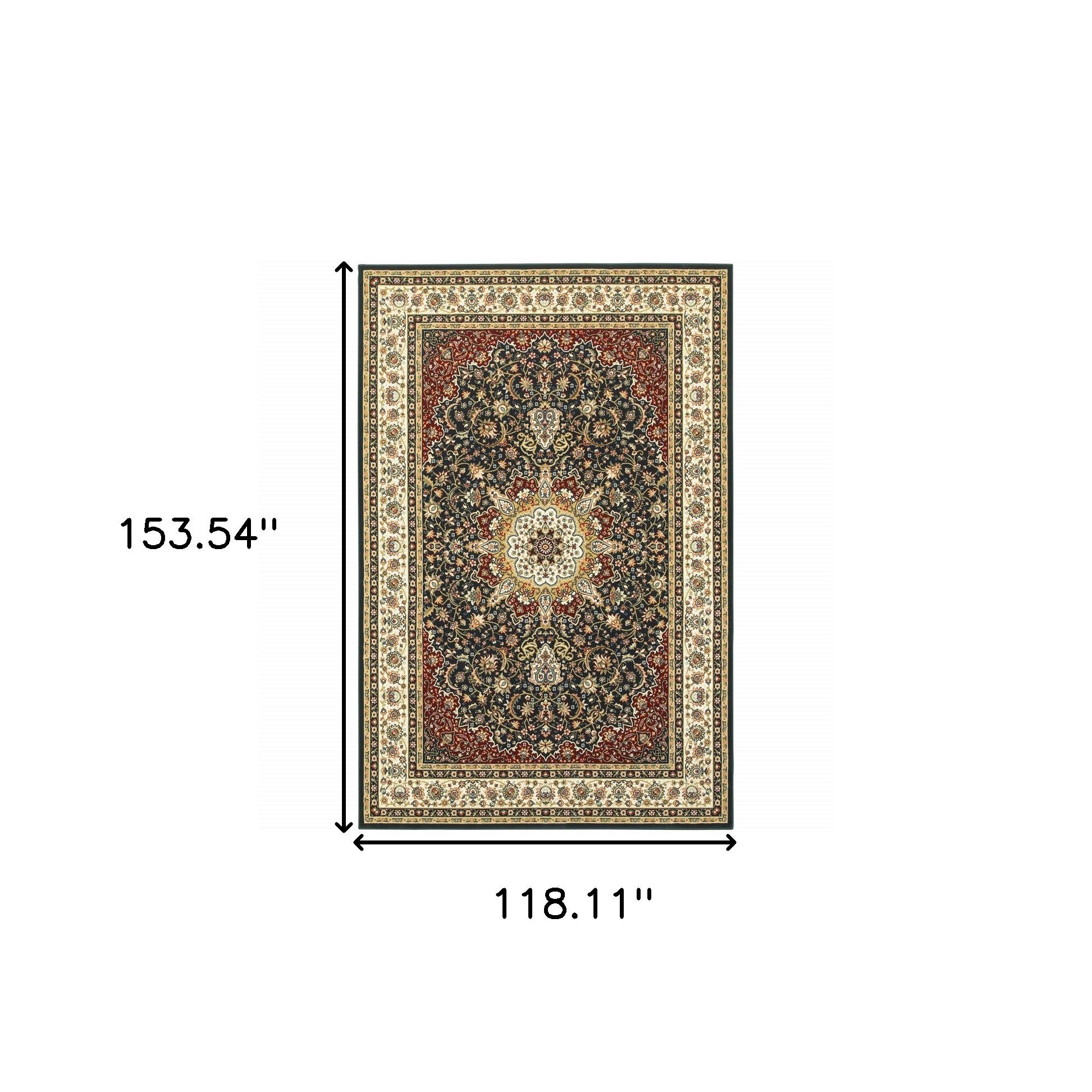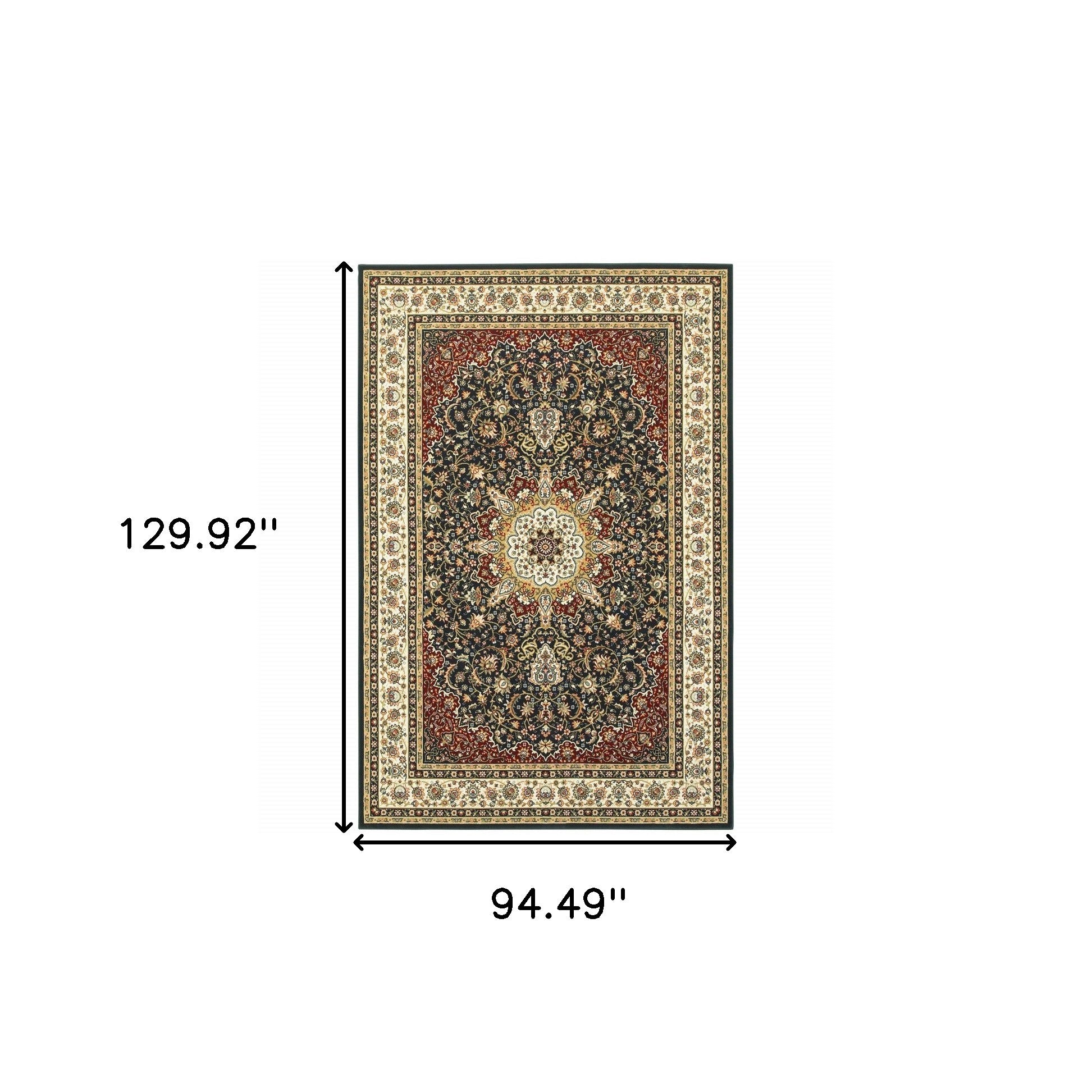 4' X 6' Navy And Ivory Oriental Power Loom Stain Resistant Area Rug