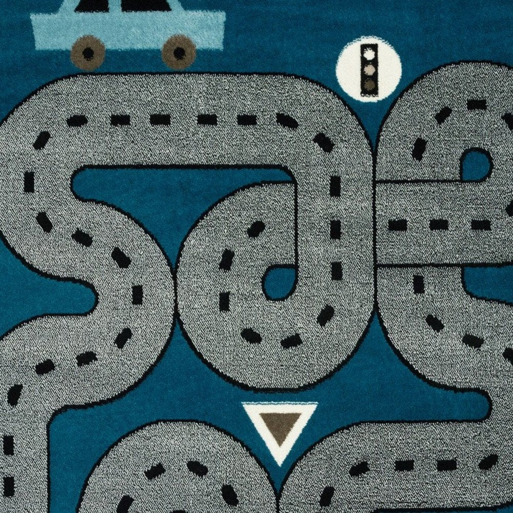 Let your little one’s room look and feel playful with this Navy Blue Imaginative Racetrack Area Rug that features a colorful and creative design for hours of playtime. The gray racetrack is flaunted over a stunning navy blue base for visual interest while the cute car motifs and roadsigns make this piece even more delightful. Machine-made in Turkey with premium olefin fibers for a durable, stain-resistant, and easy cleaning rug which would be a perfect accent for a child’s bedroom, daycare, or play area. Meant to keep its strength and sheen for years to come, this rug is constructed in a low pile for a smooth and shiny surface that stays pristine with low maintenance. If you’re looking for something fun yet trendy to align with modern styling, this colorful area rug is the way to go. 60” x 84” x 0.4”