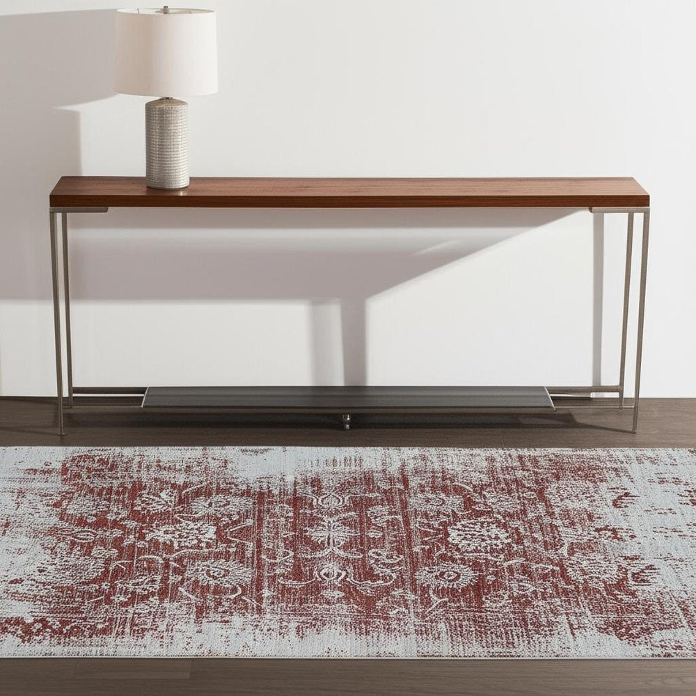 4' X 6' Rust Oriental Distressed Stain Resistant Area Rug