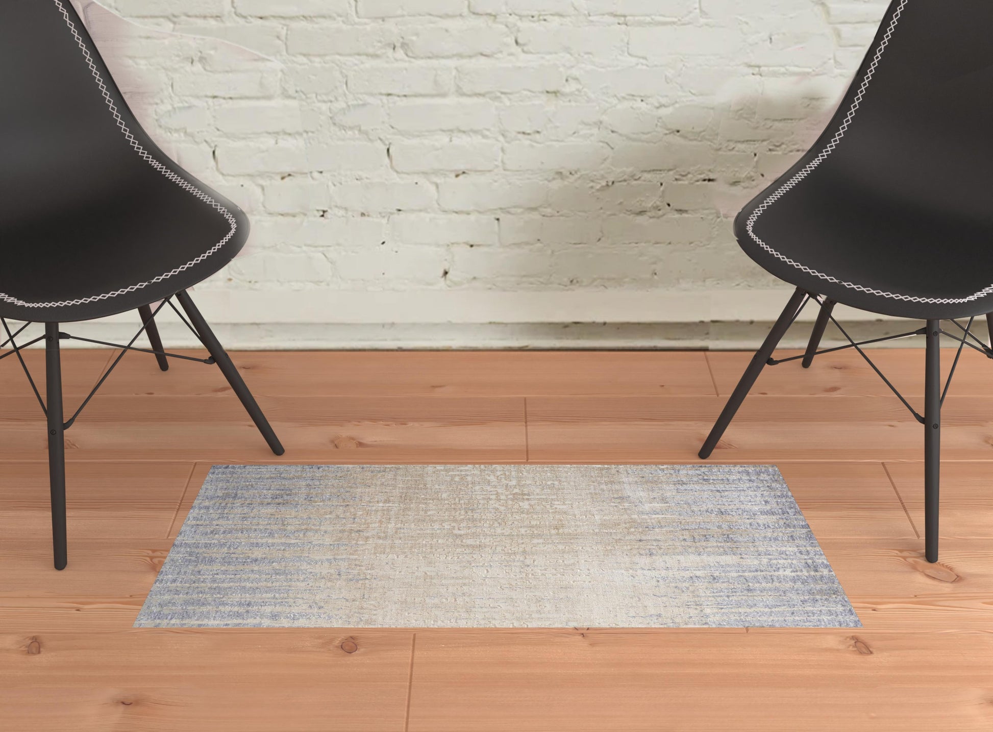 4' X 6' Tan Brown And Blue Abstract Power Loom Distressed Area Rug