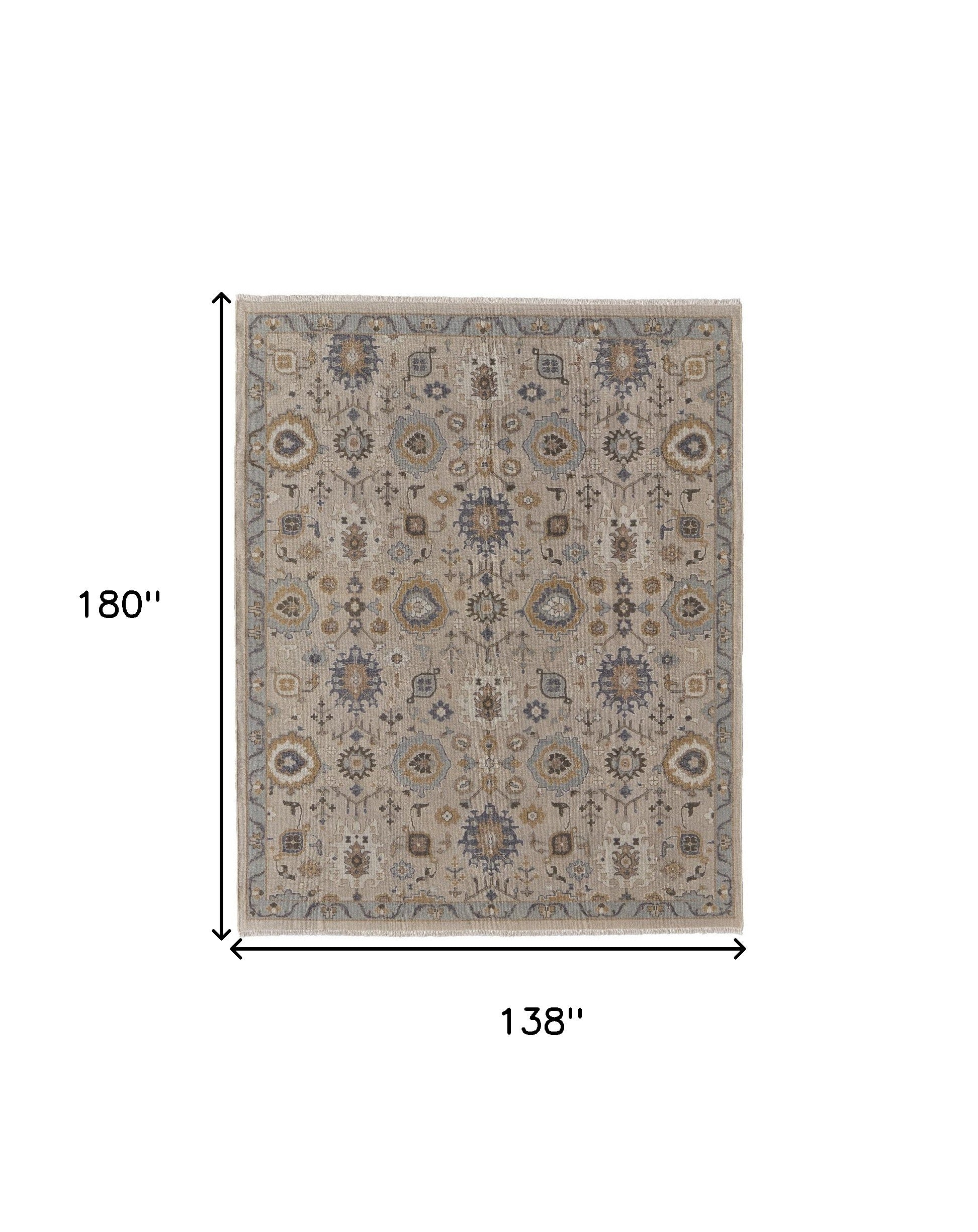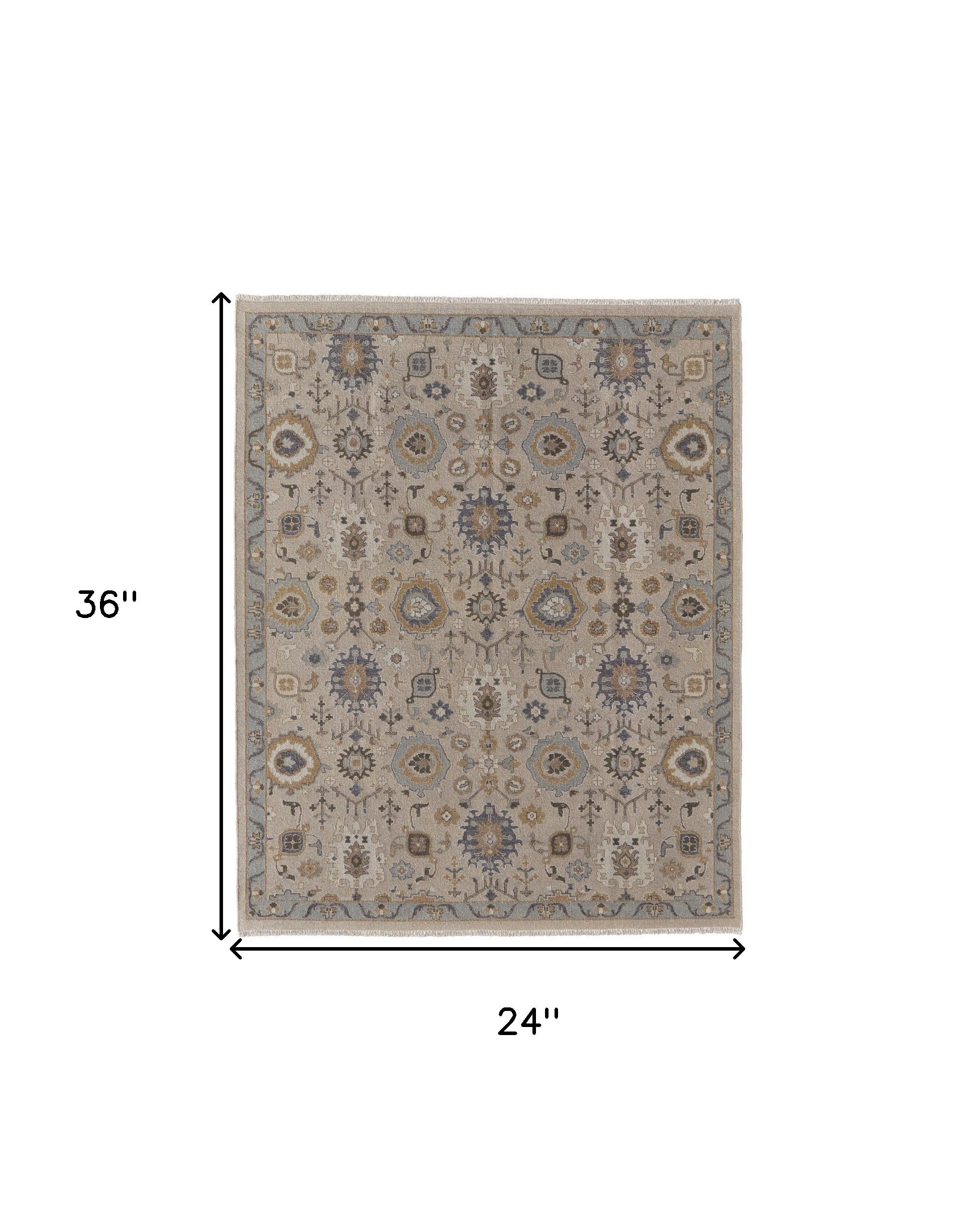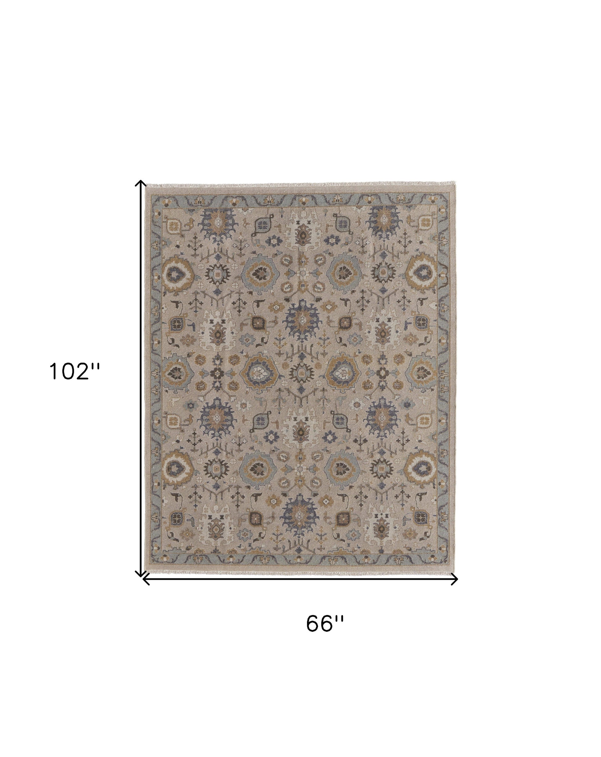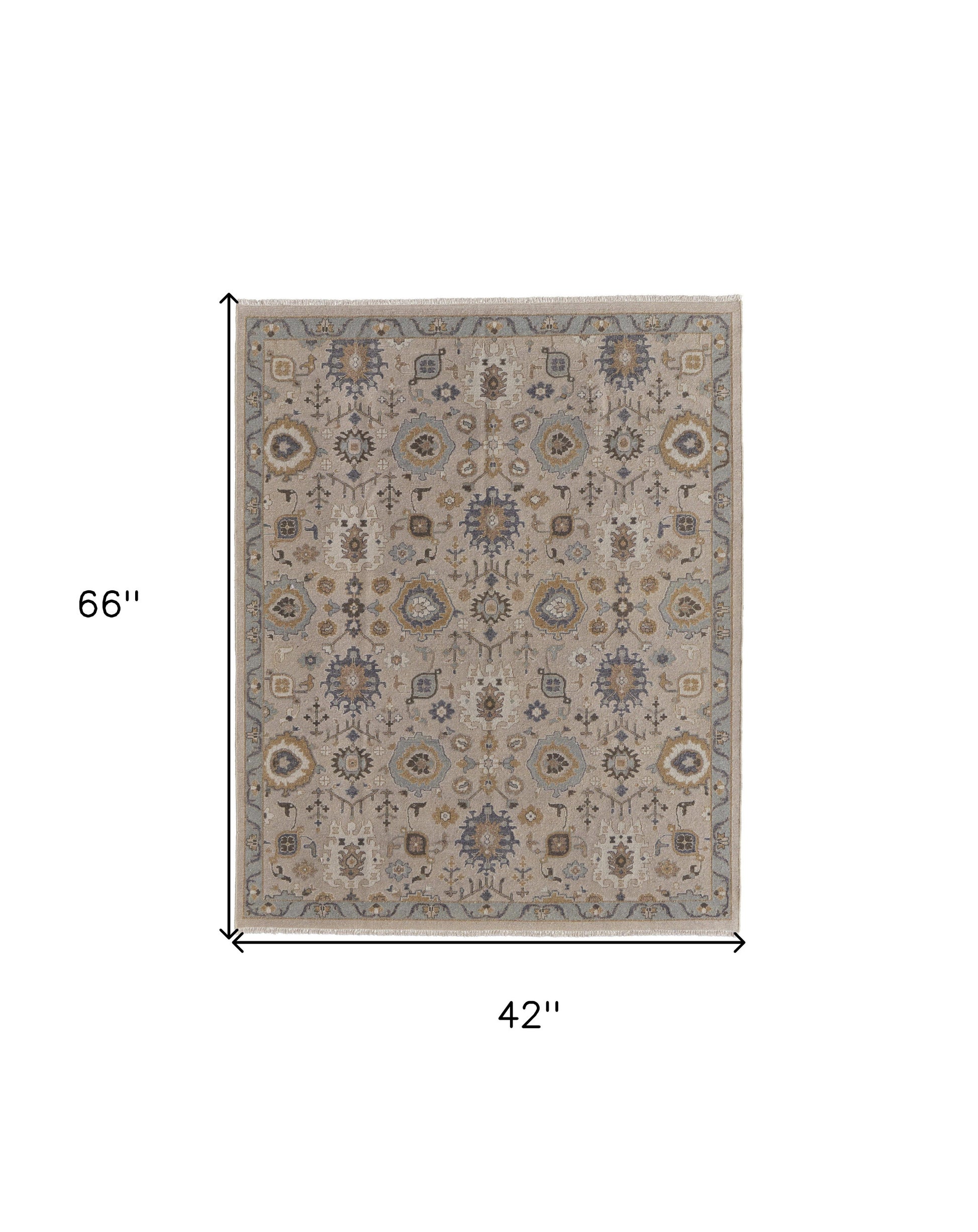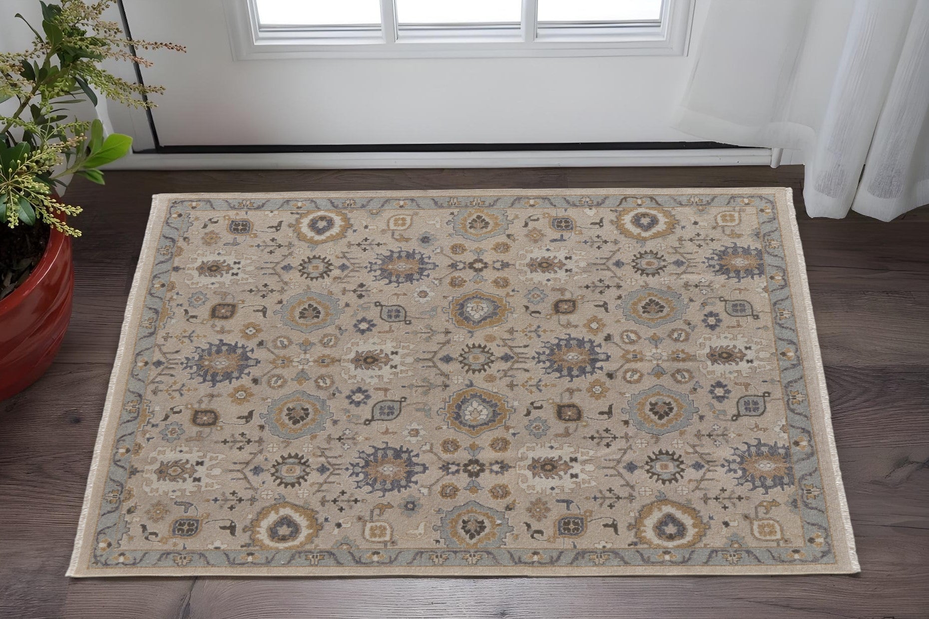 4' X 6' Tan Brown and Gray Wool Oriental Hand Knotted Area Rug With Fringe
