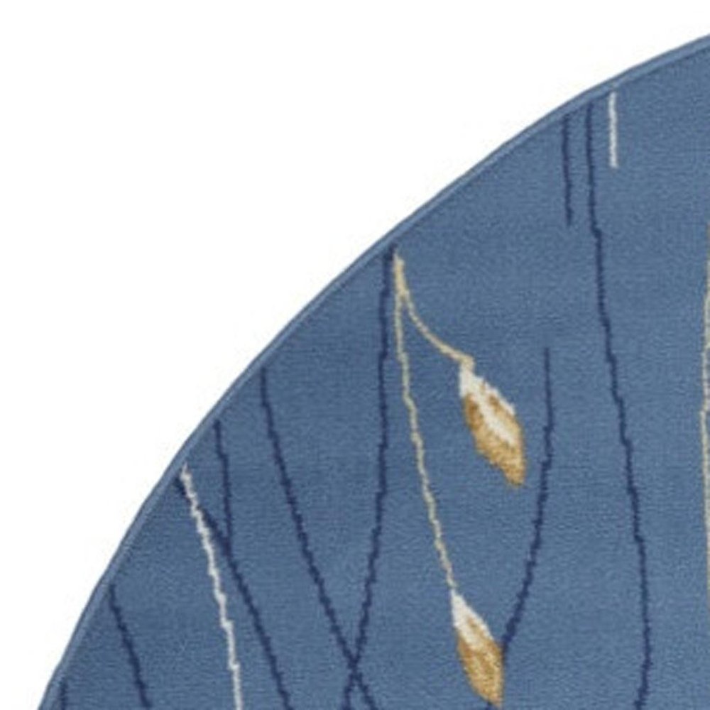 5' Blue and Beige Round Floral Vines Power Loom Area Rug