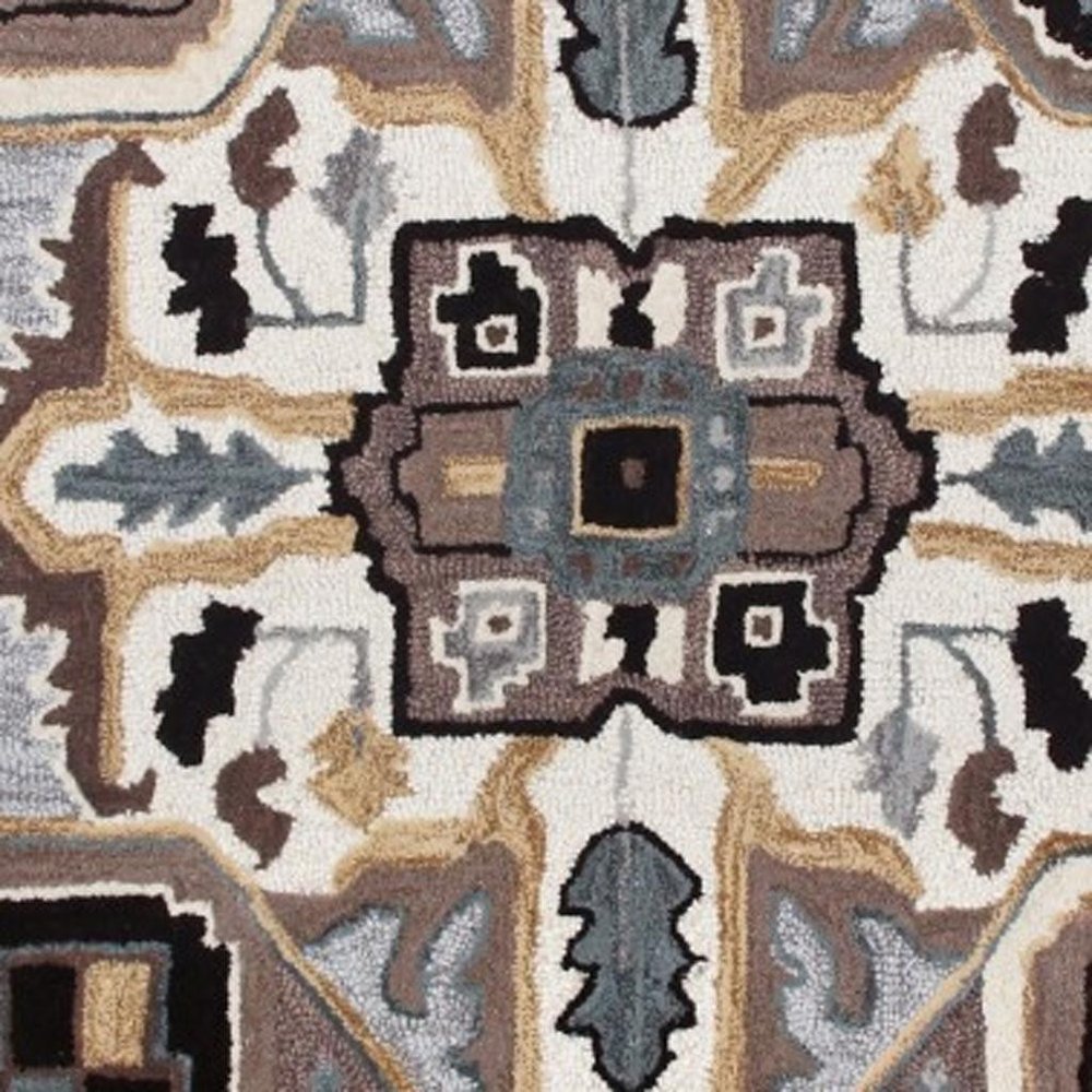 Add some artistry to your room with this 5-foot x 5-foot blue and red wool hand tufted area rug. Crafted by skilled artisans, this hand tufted rug is genuine and unique. No two will be exactly alike. Rugs are a great way to showcase your style, hide imperfections, warm your home and reduce noise. This larger sized, modern styled rug is ready to create a focal point or statement piece in your room. 60-inch h x 60-inch w x 0.5-inch d.
