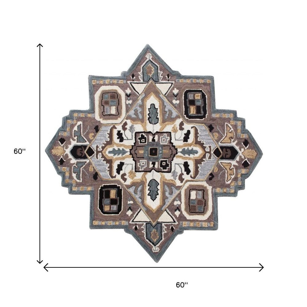 5' X 5' Blue And Red Wool Hand Tufted Area Rug