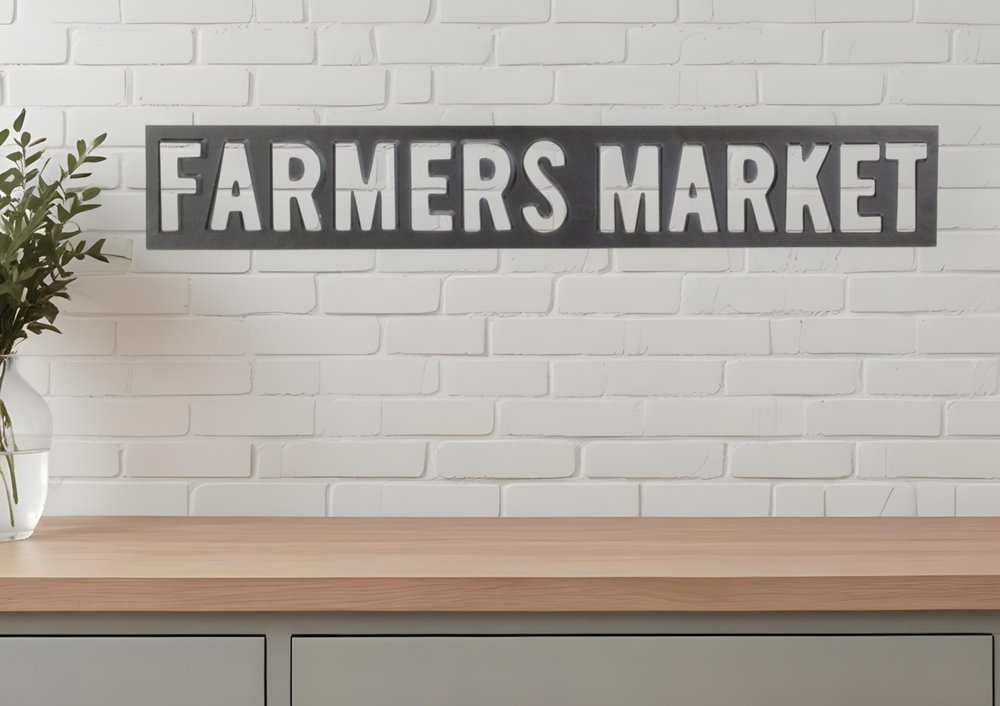 5" X 33" Gray and White Farmers Market Metal Wall Decor