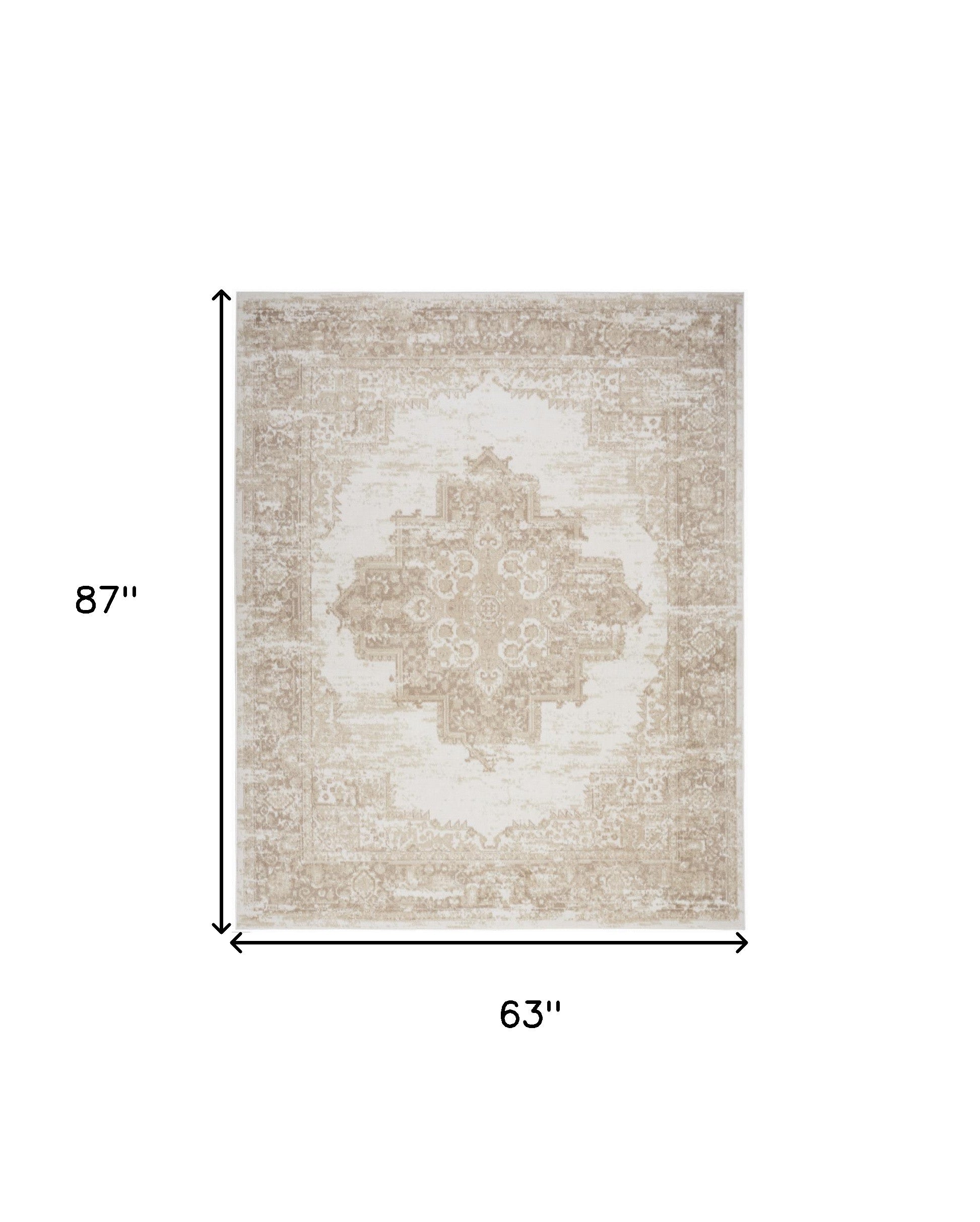 Add some artistry to your room with this 5-foot x 7-foot beige and ivory medallion power loom distressed area rug. This rectangle shaped rug features a medallion design in beige and ivory to give it visual interest. A classic shape marries with good looking design for your space area rugs help to give warmth and sense of home to your space. 63-inch H x 87-inch W x 0.5-inch D