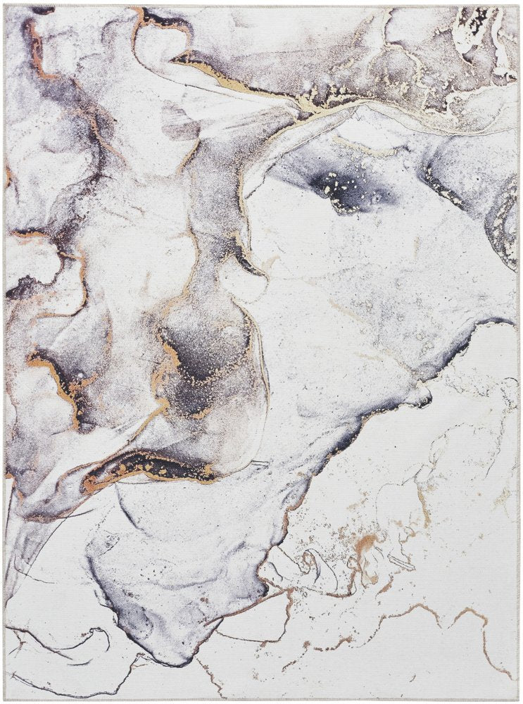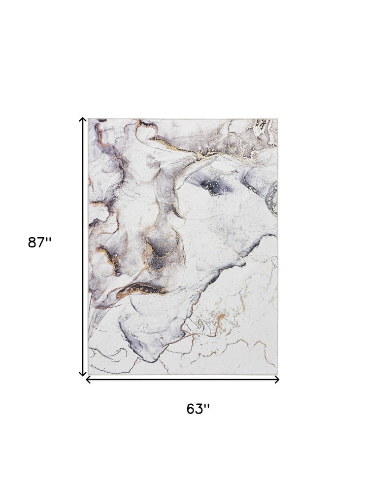 5' X 7' Black and Gold Abstract Power Loom Area Rug