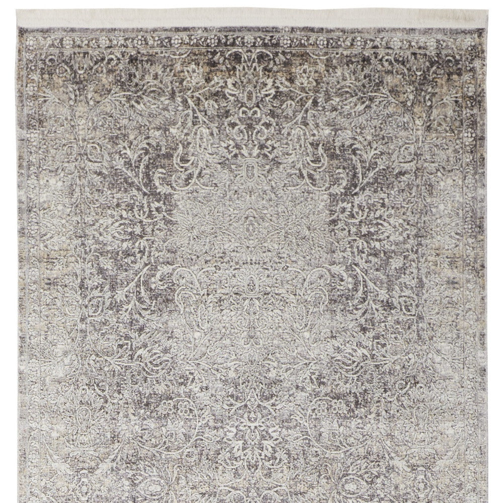 5' X 7' Tan and Gray Oriental Power Loom Worn Faded Area Rug