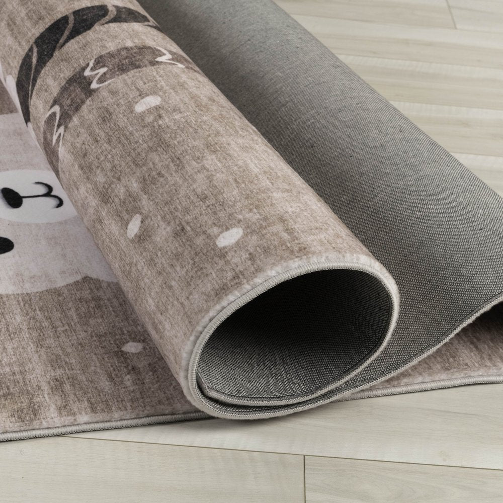 This 5-foot x 8-foot brown and beige juvenile animals youthful area rug, is a great way to add warmth to a room. Features the perfect playful pattern that is ideal for child's bedroom, nursery, playroom, or den. This rectangle shaped rug features a youthful design in brown and beige to give it visual interest. Ideal for spaces with kids and pets, this rug is stain resistant to help repel stains and spilled liquids. 63-inch H x 91-inch W x 0.4-inch D