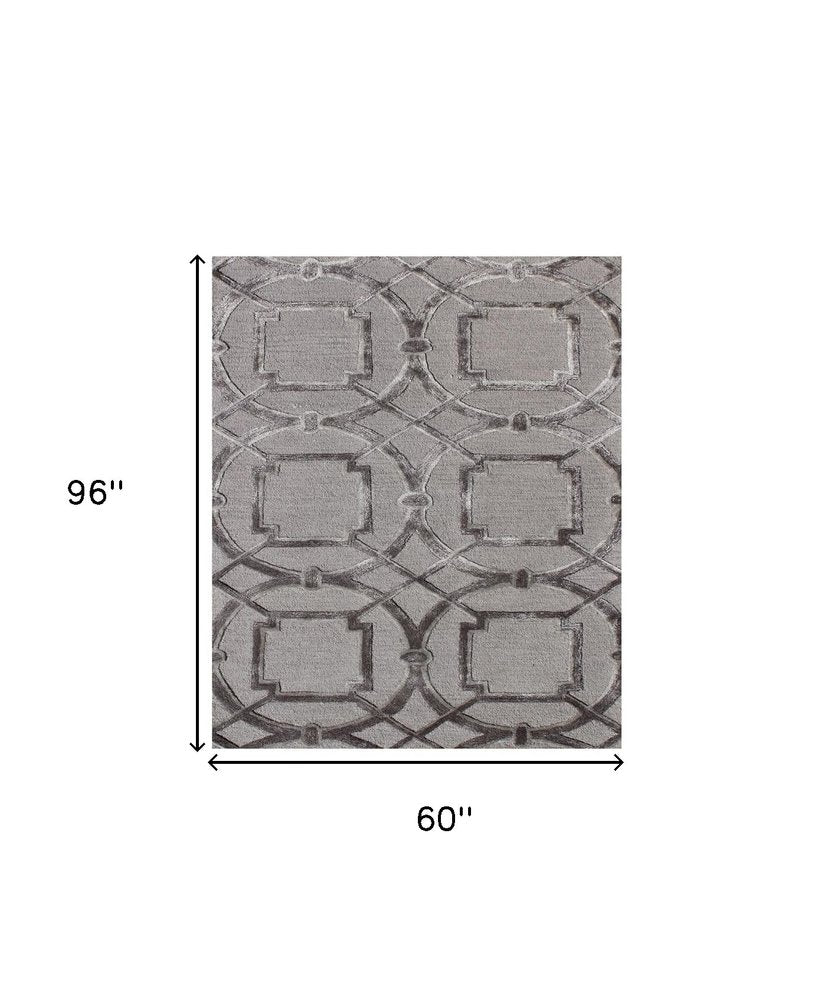 5' X 8' Gray and Dark Gray Abstract Geometric Hand Tufted Area Rug
