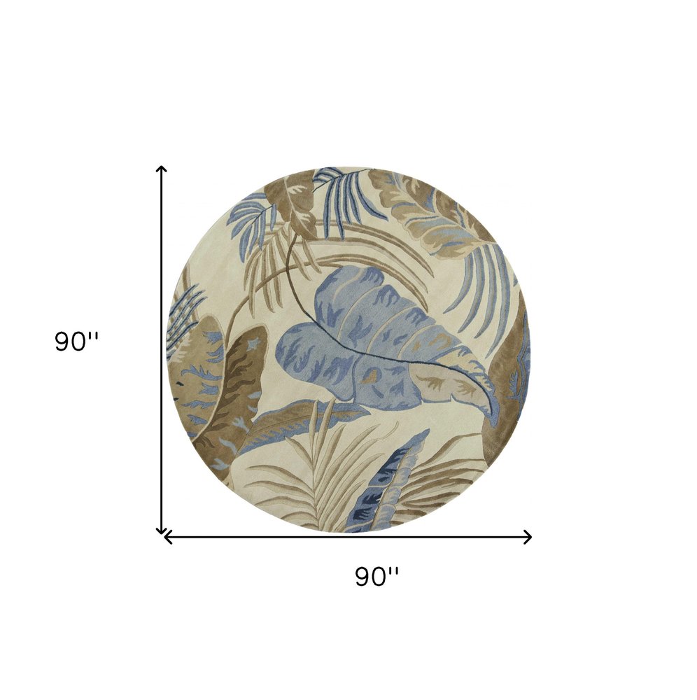 5' X 8' Ivory Blue And Brown Wool Tropical Botanical Hand Tufted Area Rug