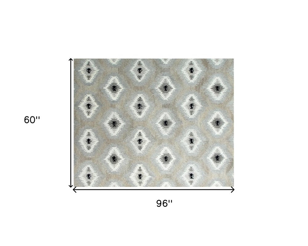 5' X 8' Natural Wool Southwestern Hand Tufted Non Skid Area Rug