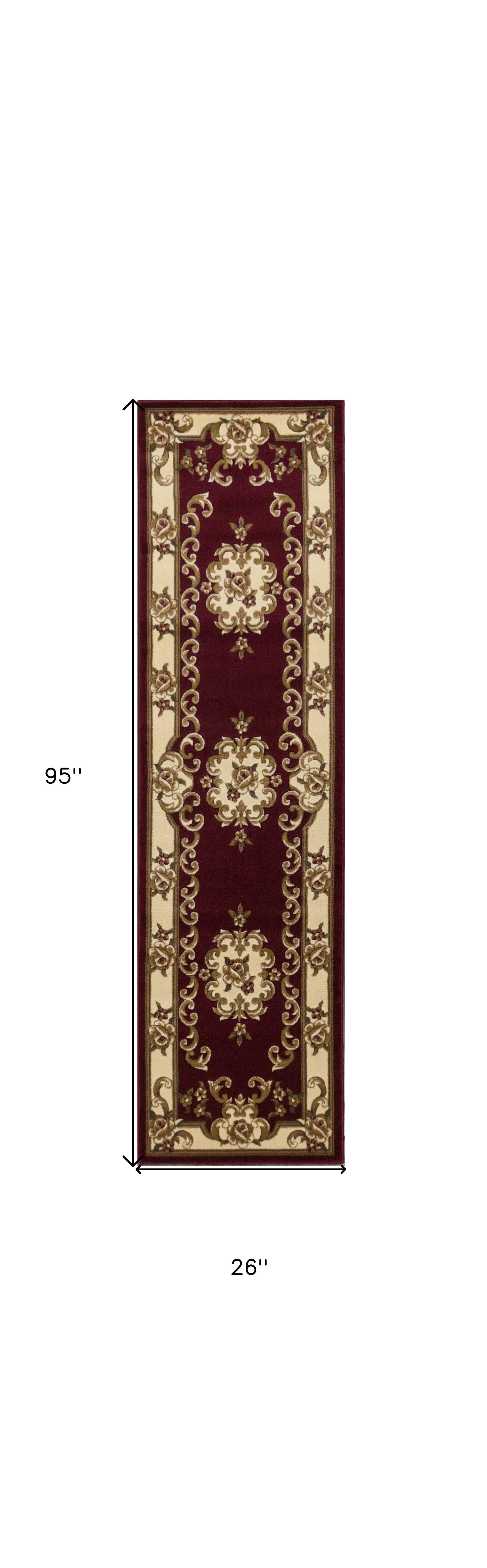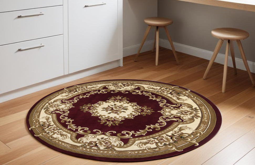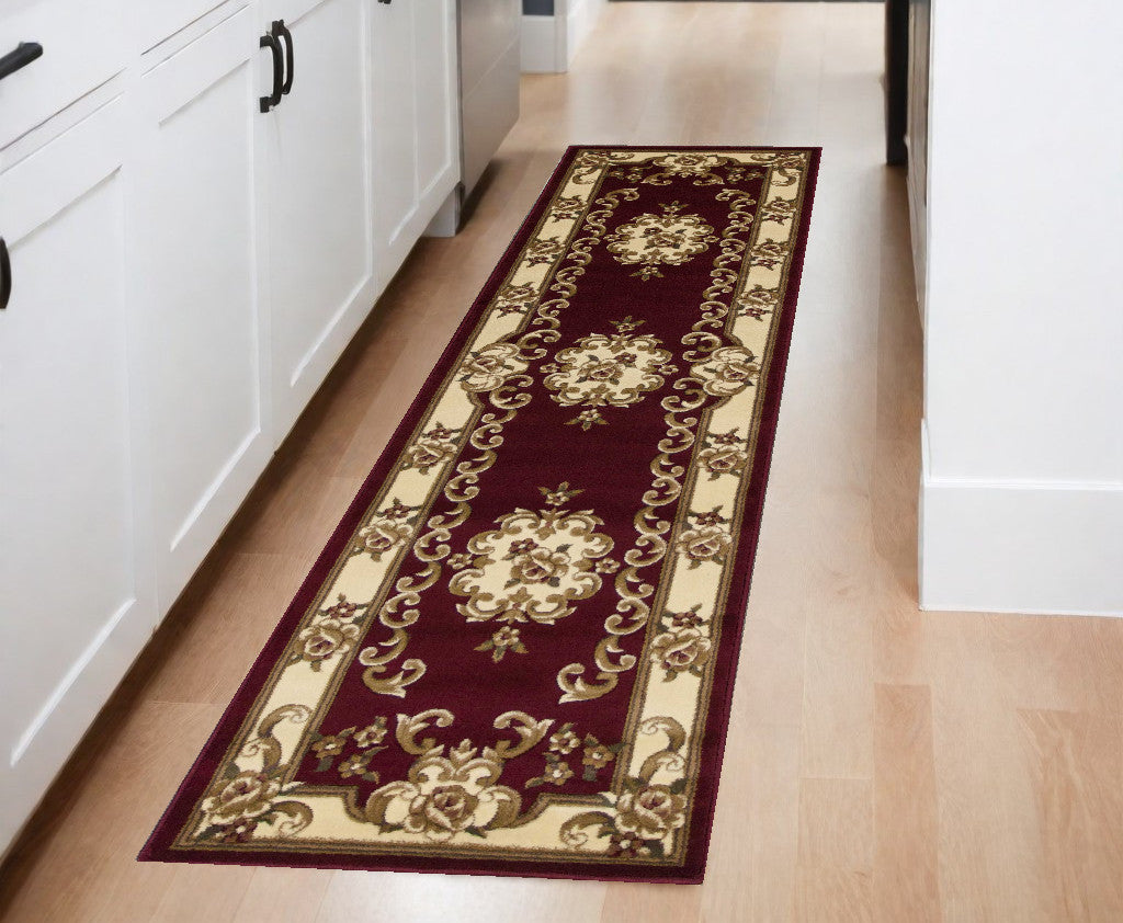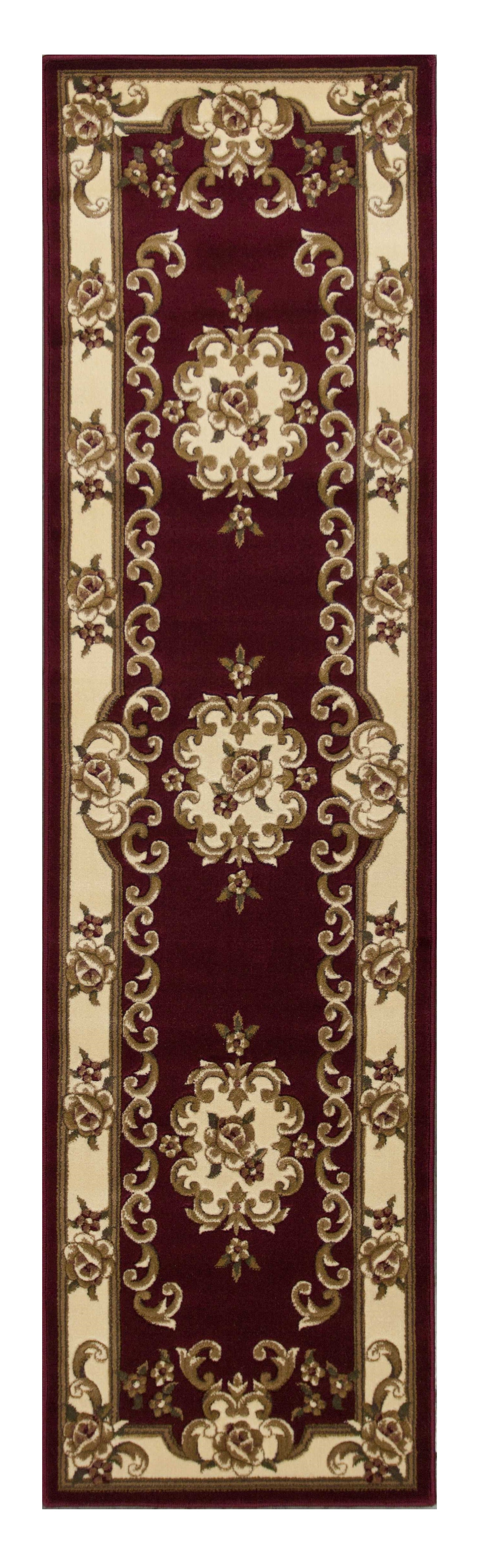 Set an inviting tone in your space with this 5-foot x 8-foot red and ivory floral bordered area rug. This rectangular shaped rug features a Victorian style Aubusson floral design in deep red and ivory to give it visual interest. A classic shape marries with good looking design for your space place this area rug against a hardwood or tile floor and it will enliven your living space with style and sophistication. 63-inch H x 91-inch W x 0.5-inch D