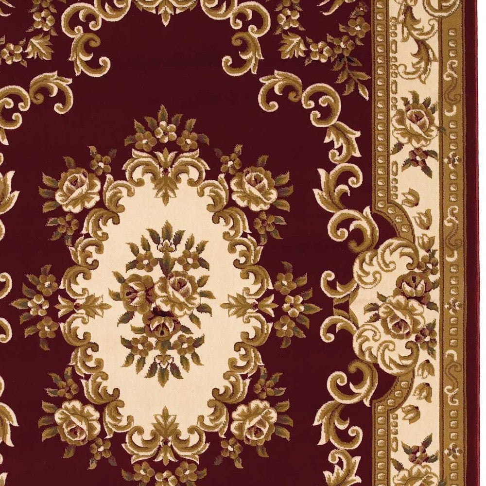 Add great coloration and comfortable texture to your space with this 3-foot x 5-foot red and ivory floral border area rug. This rectangular shaped rug features a Victorian style Aubusson floral design in deep red and ivory to give it visual interest. A classic shape marries with good looking design for your space ideal for spaces with kids and pets, this rug is stain resistant to help repel stains and spilled liquids. Area rugs help to give warmth and sense of home to your space. 39-inch H x 59-inch W x 0.5-inch D