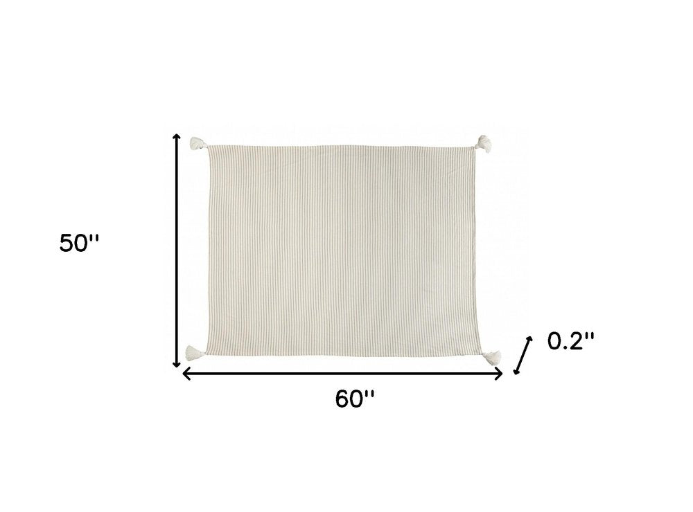 50" X 60" Brown and White Woven Cotton Striped Throw Blanket with Tassels