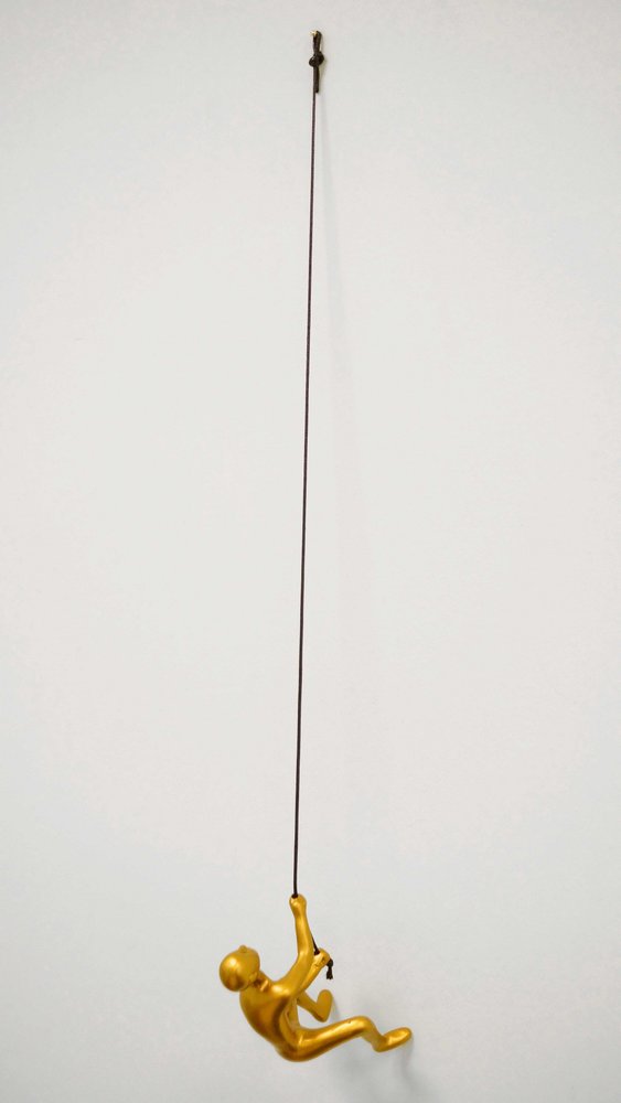 Unique and decorative, this 6-inch x 3-inch gold resin novelty hanging dimensional sculpture will leave a lasting impression. Instantly liven up your space with this art that brings color and dimension to your walls. This super cool wall sculpture creates the illusion of a man climbing on any surface from which he is hung. Made from durable resin, this striking 3D piece of art looks great by itself but can also be staggered with others to make a unique design collage. Start some conversation when you hang this on your wall today. 6-inch h x 3-inch w x 3-inch d.