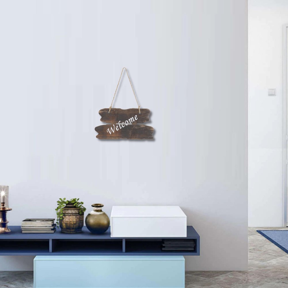 Unique and decorative, this 6-inch x 12-inch brown welcome wood wall decor will leave a lasting impression. Handmade with care, this piece brings some authenticity to your space. With materials and a finish that is purposefully distressed, this hanging wall decor will instantly liven things up and bring color and dimension to your walls. 6.25-inch H x 12-inch W x 0.5-inch D