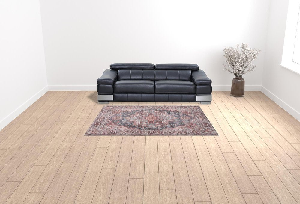 6' X 9' Blue And Pink Medallion Distressed Washable Area Rug
