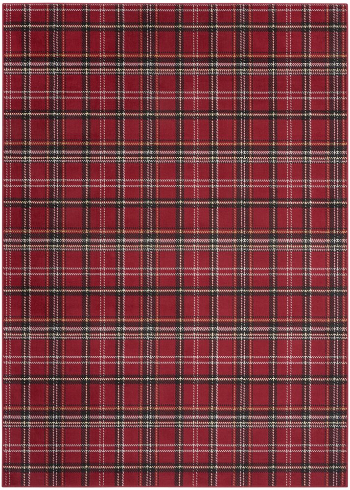 Add some artistry to your room with this 6-foot x 9-foot red and black plaid power loom area rug. This rectangle shaped rug features a plaid design in red and black to give it visual interest. A classic shape marries with good looking design for your space place this area rug against a hardwood or tile floor and it will enliven your living space with style and sophistication. 72-inch H x 108-inch W x 0.5-inch D