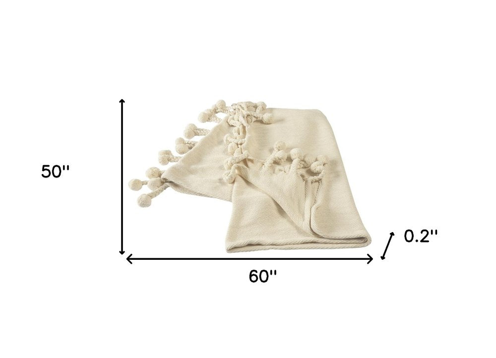 60" X 50" Cream Woven Cotton Chevron Throw Blanket with Tassels