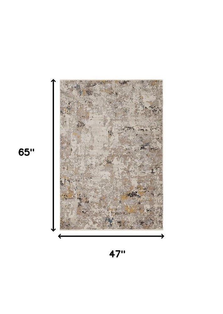 Add some artistry to your room with this 8-foot beige tan and gold abstract round rug. Built to last, this rug crafted from polyester fibers is known for its durability and long lasting appeal. Rugs are a great way to showcase your style, hide imperfections, warm your home and reduce noise. This larger sized, contemporary styled rug is ready to create a focal point or statement piece in your room. 96.00-inch h x 96.00-inch w x 0.50-inch d.