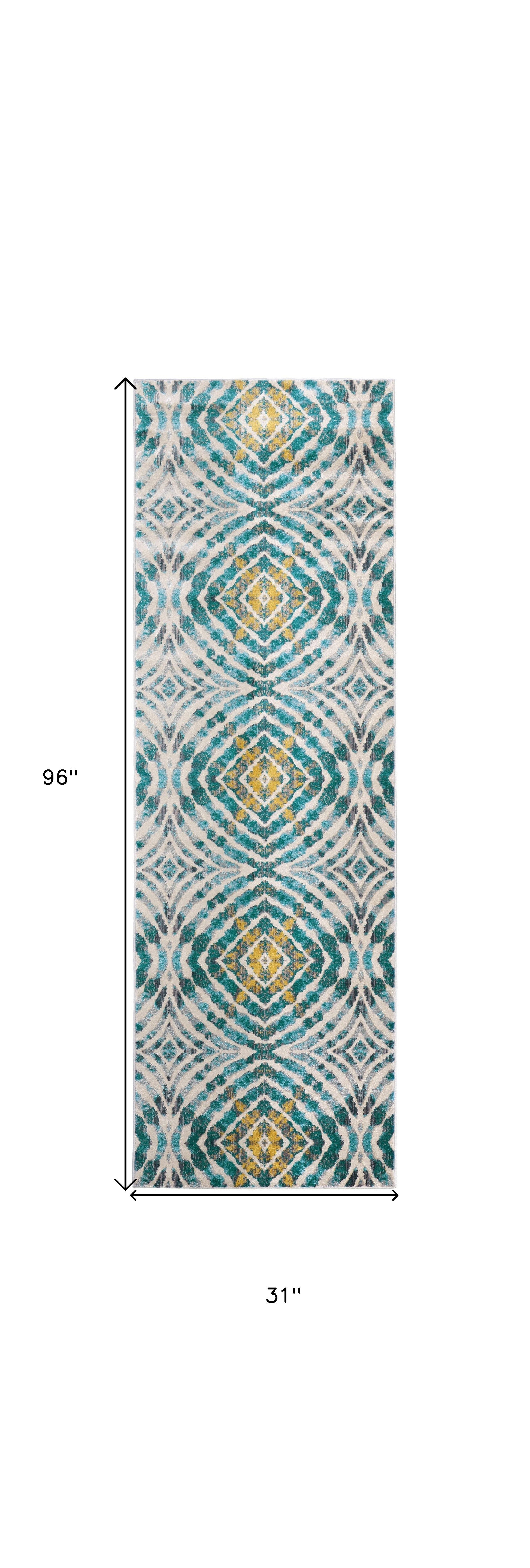 Add some artistry to your room with this 7-foot x 10-foot blue ivory and yellow abstract power loom area rug. This rectangle shaped rug features a abstract design in blue ivory and yellow to give it visual interest. A classic shape marries with good looking design for your space ideal for spaces with kids and pets, this rug is stain resistant to help repel stains and spilled liquids. Area rugs help to give warmth and sense of home to your space. 79-inch H x 114-inch W x 0.41-inch D