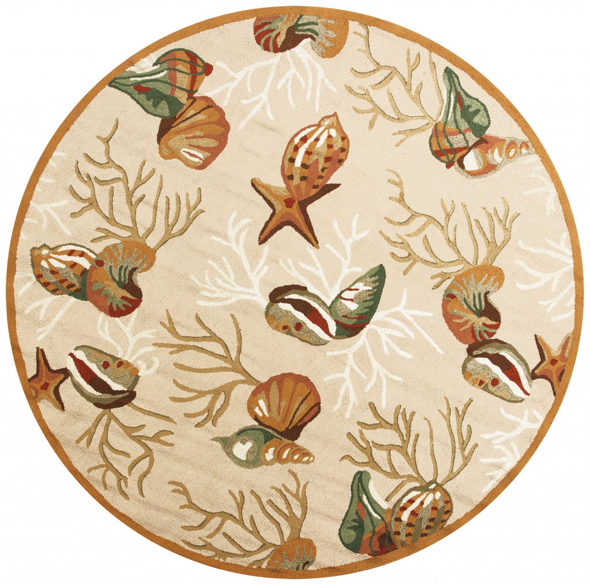 2' X 3' Beige Green And Brown Seashell and Coral Hand Tufted Area Rug