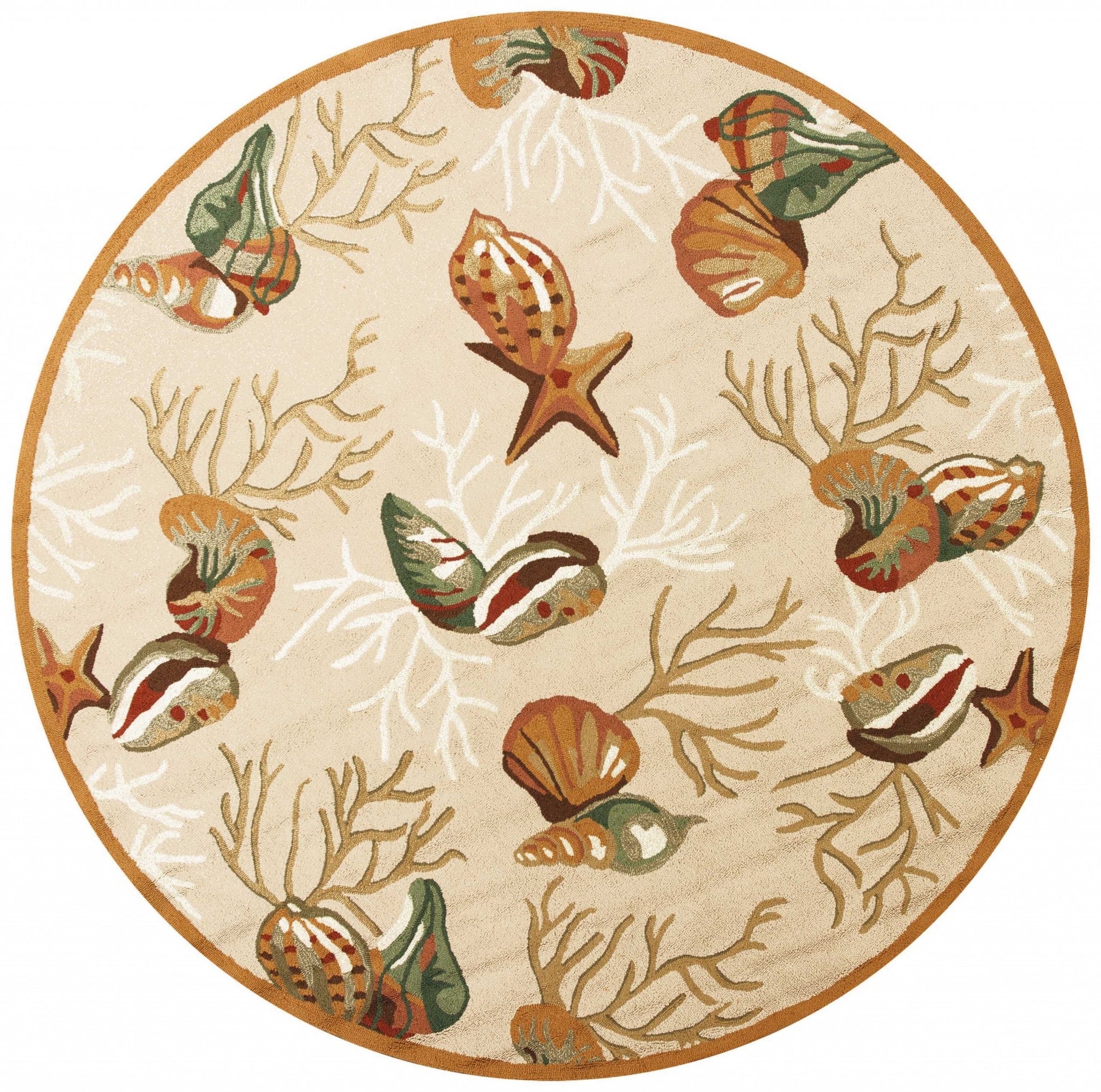 Add great coloration and comfortable texture to your space with this 2-foot x 3-foot beige green and brown seashell and coral hand tufted area rug. Crafted by skilled artisans, this hand tufted rug is genuine and unique. No two will be exactly alike. Built to last, this rug crafted from polyester fibers is known for its durability and long lasting appeal. Rugs are a great way to showcase your style, hide imperfections, warm your home and reduce noise. This smaller sized, contemporary styled rug is just what you need for your walkway, bedside, in front of door, cabinet, refrigerator, or chair. 20.00-inch h x 30.00-inch w x 0.50-inch d.