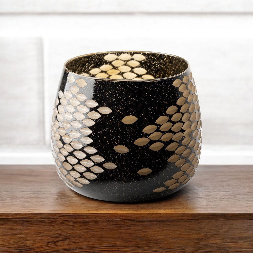 Elevate your space with the 8-inch gold abstract cylinder crystal glass table vase. Its modern style and sleek cylinder shape exude sophistication, making it a perfect addition to any contemporary decor. Crafted from exquisite crystal glass in a luxurious gold hue, this vase adds a touch of elegance to your home. The unique abstract design of this piece sets it apart, making it a statement accessory for your tabletop or shelf. Ideal for showcasing fresh blooms or as a stand-alone decorative accent, this table vase effortlessly enhances the aesthetic of any room. Embrace the beauty of modern design with this stunning gold vase. 8-inch h x 9-inch w x 9-inch d.