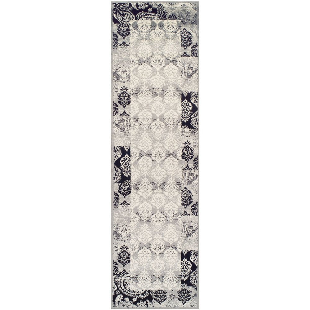 Set an inviting tone in your space with this 8-foot black and gray damask distressed runner rug. Ideal for spaces with kids and pets, this rug is stain resistant to help repel dirt and spilled liquids. Built to last, this rug crafted from polypropylene fibers is known for its durability and long lasting appeal. Rugs are a great way to showcase your style, hide imperfections, warm your home and reduce noise. This transitional style runner makes a great accent for the hallway, in front of cabinets, in the laundry room, or any other space you need a narrow and long rug. 32.40-inch h x 96.00-inch w x 0.31-inch d.