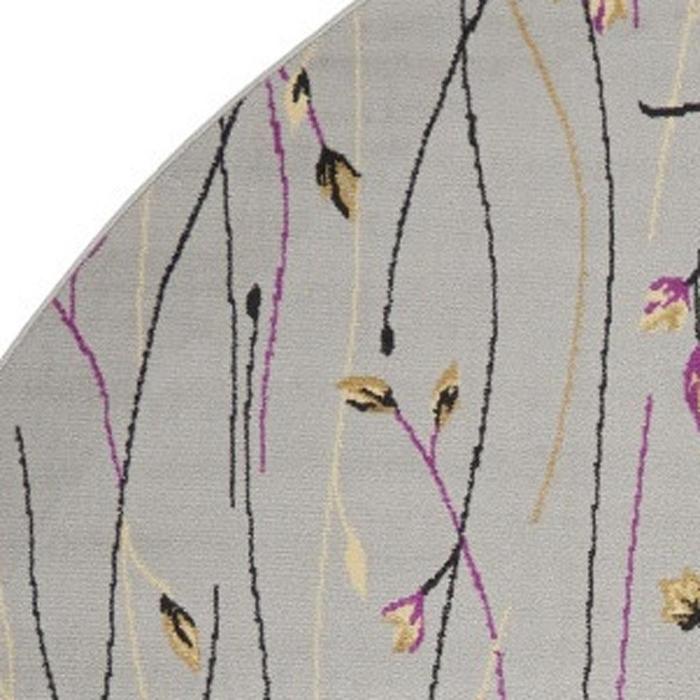 8' Gray and Pink Round Floral Power Loom Area Rug