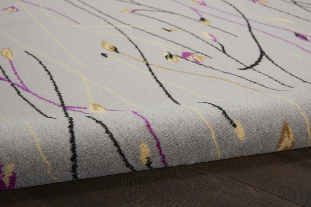 Set an inviting tone in your space with this 8-foot gray and pink round floral power loom area rug. This geometric round shaped rug features a floral pattern in gray and pink that combines a good looking print with a unique and updated shape. The mix of shape, color, and design gives this rug refreshing visual interest. Area rugs help to give warmth and sense of home to your space. 96-inch H x 96-inch W x 0.5-inch D