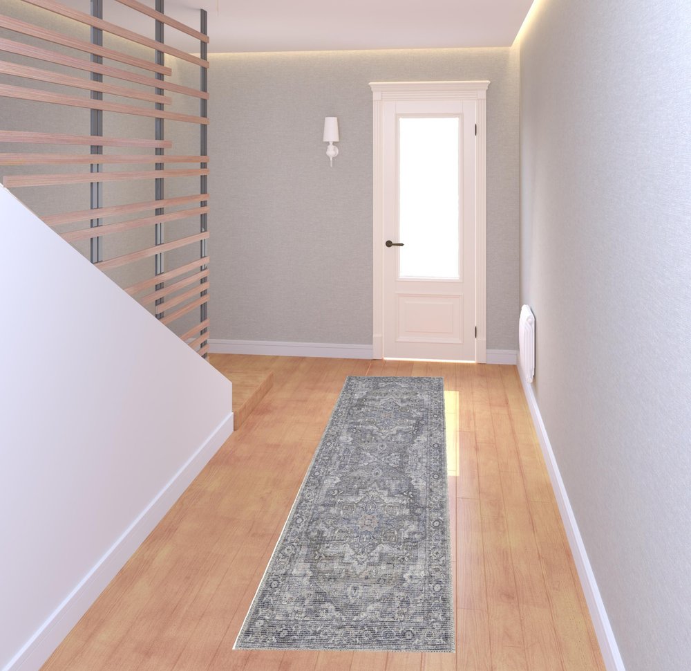 Add great coloration and comfortable texture to your space with this 8' gray floral power loom distressed washable runner rug. This runner shaped rug features a floral design in gray to give it visual interest. A classic shape marries with good looking design for your space Made in Turkey, this rug offers high quality combined with good looking designer sensibilities. Place this area rug against a hardwood or tile floor and it will enliven your living space with style and sophistication. .28" H x 26.00" W x 96.00" D