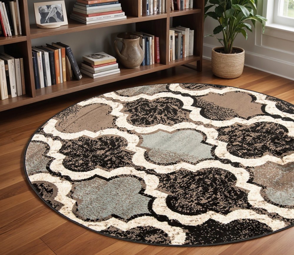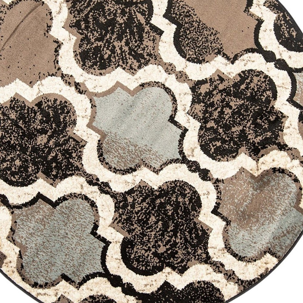 Keywords | distressed stain resistant area rug, stain resistant area rug, resistant area rug, quatrefoil power loom distressed stain, chocolate round quatrefoil power loom |