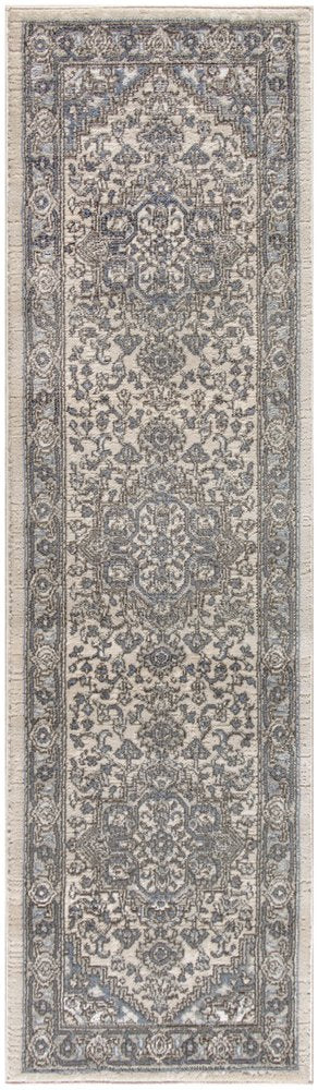 This 8-foot blue and ivory medallion distressed runner rug, is a great way to add warmth to a room. Built to last, this rug crafted from polypropylene and polyester fibers is known for its durability and long lasting appeal. Rugs are a great way to showcase your style, hide imperfections, warm your home and reduce noise. This rectangular shaped rug features a abstract design that will add a functional and decorative accent to your space. This transitional style runner makes a great accent for the hallway, in front of cabinets, in the laundry room, or any other space you need a narrow and long rug. 26-inch h x 90-inch w x 0.32-inch d.