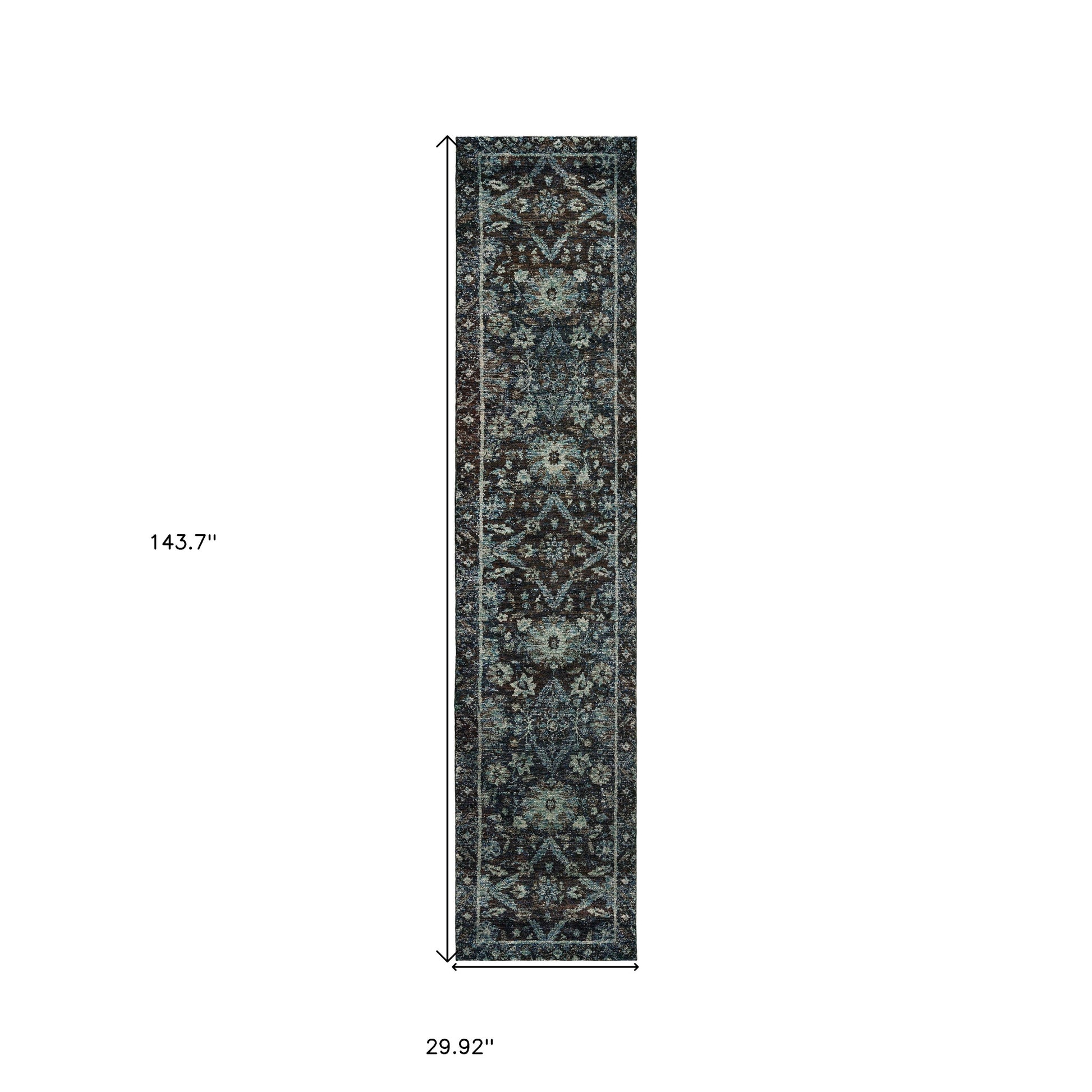 8' Runner Navy Blue Oriental Power Loom Runner Rug
