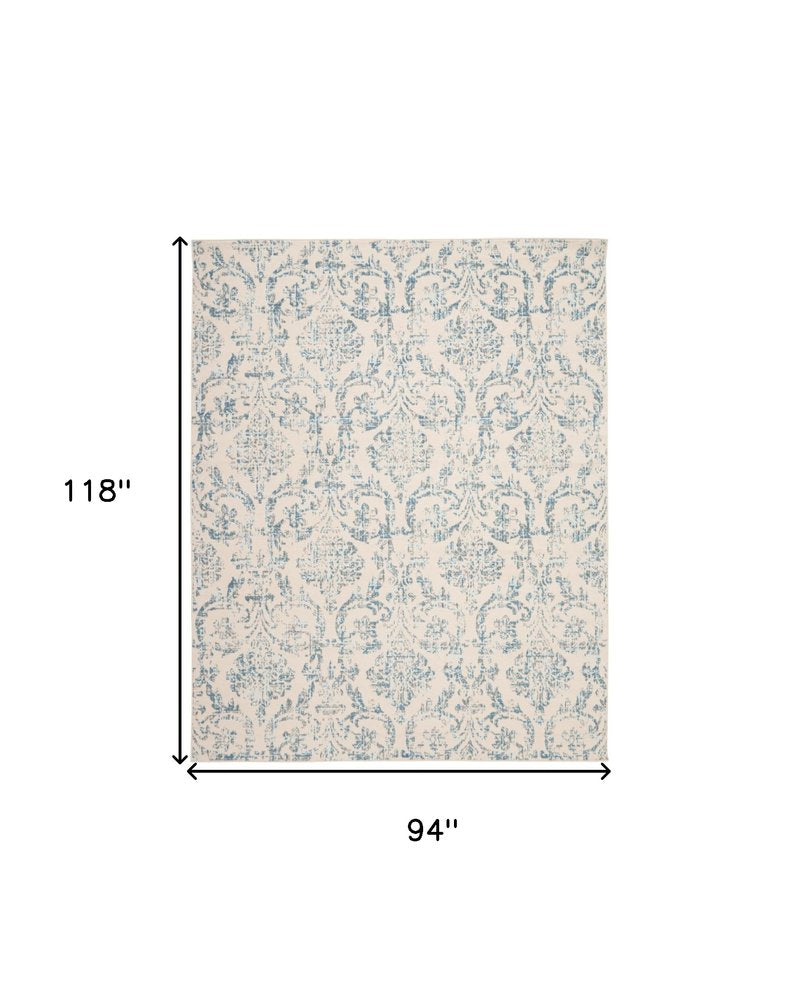 Add some artistry to your room with this 8' x 10' cream damask power loom area rug. This rectangle shaped rug features a damask design in cream to give it visual interest. A classic shape marries with good looking design for your space Made in Turkey, this rug offers high quality combined with good looking designer sensibilities. Place this area rug against a hardwood or tile floor and it will enliven your living space with style and sophistication. .50" H x 94" W x 118" D