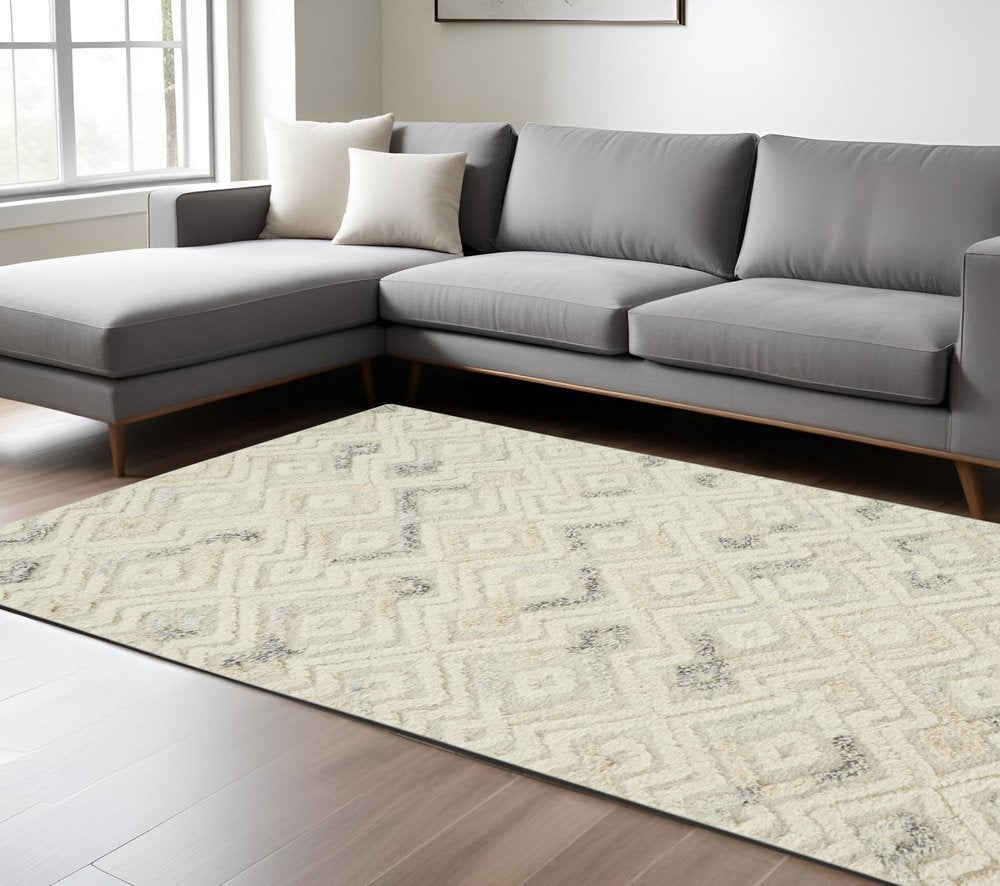 8' X 10' Ivory Gray And Black Wool Geometric Hand Tufted Area Rug
