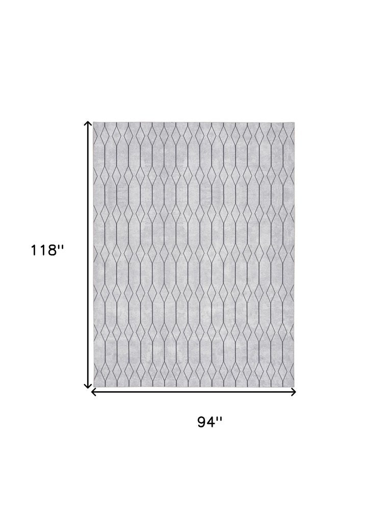 8' X 10' Ivory and Gray Geometric Power Loom Washable Area Rug
