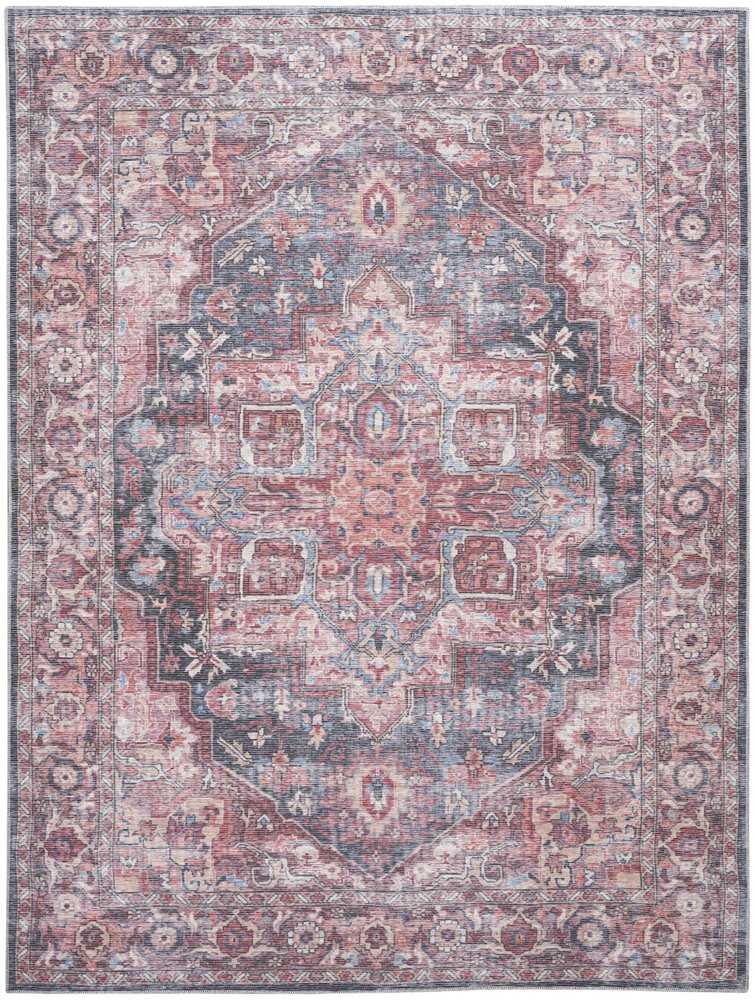 Add great coloration and comfortable texture to your space with this 8' x 10' red floral power loom distressed washable area rug. This rectangle shaped rug features a floral design in red to give it visual interest. A classic shape marries with good looking design for your space This superior Turkish rug represents the highest quality and is built to last. Place this area rug against a hardwood or tile floor and it will enliven your living space with style and sophistication. .28" H x 94.00" W x 118.00" D