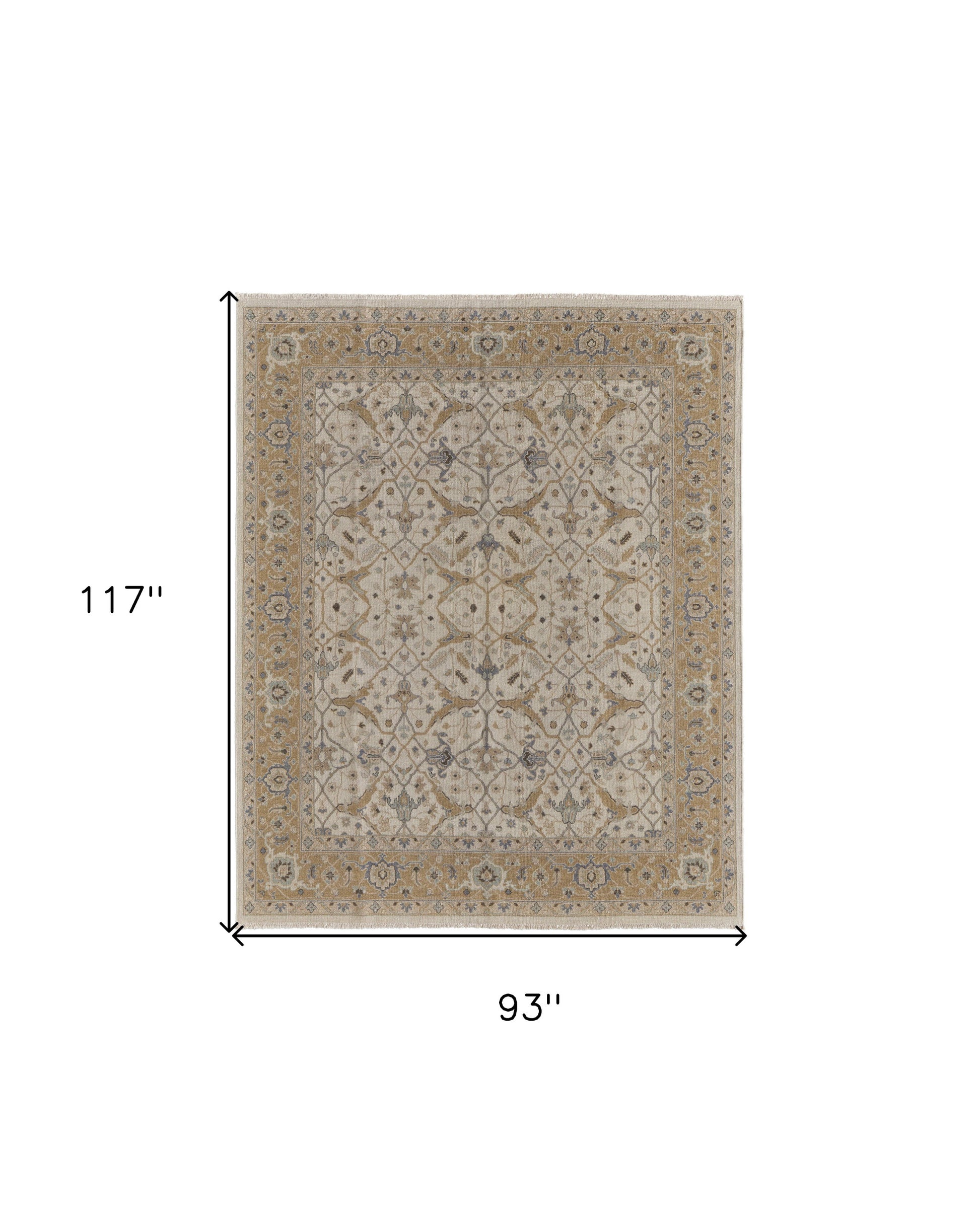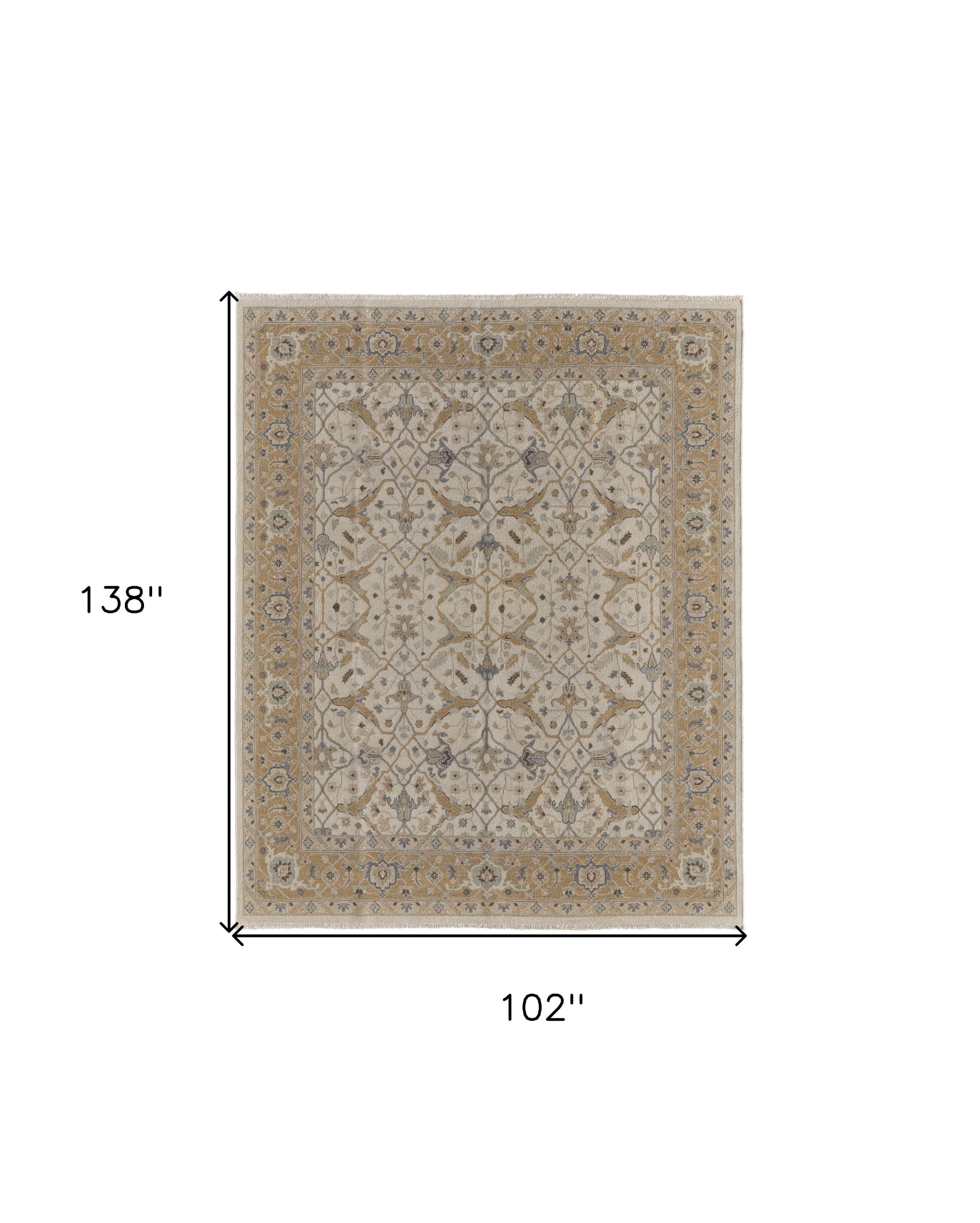 4' X 6' Ivory Gray and Tan Wool Oriental Hand Knotted Area Rug With Fringe