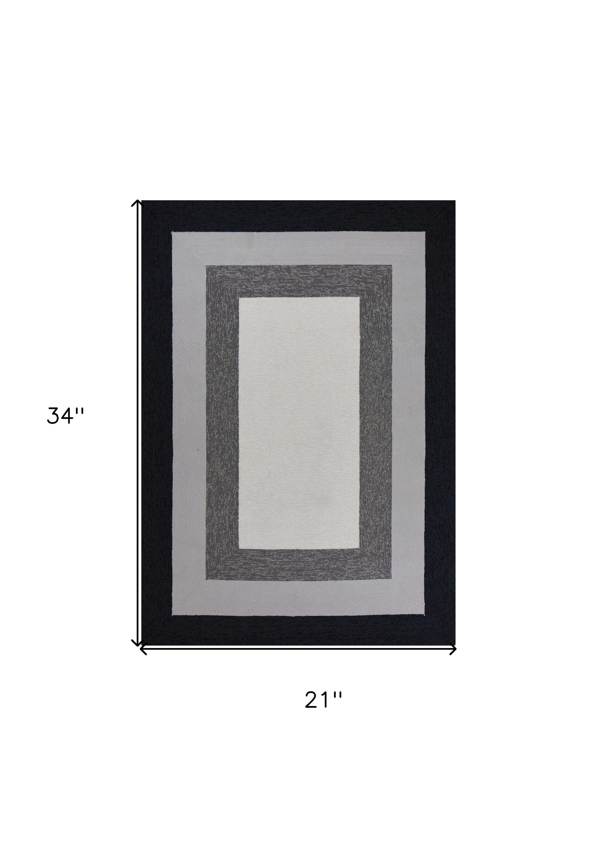 2' X 3' Black And Gray Geometric Hand Hooked Area Rug