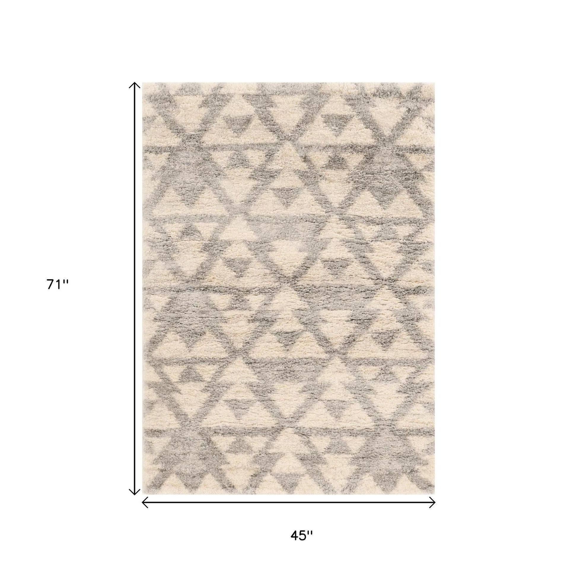 4' X 6' Ivory And Gray Geometric Distressed Area Rug