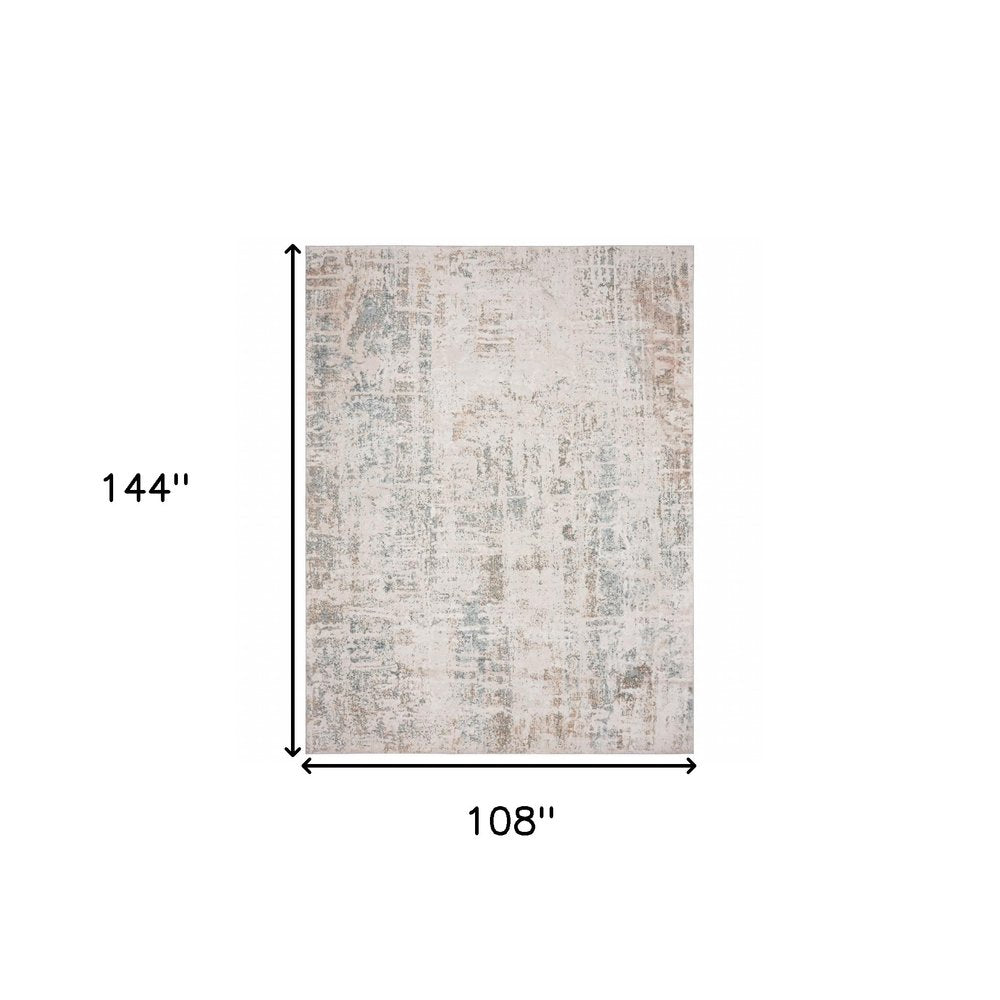 9' X 12' Gray Blue Taupe And Cream Abstract Distressed Stain Resistant Area Rug