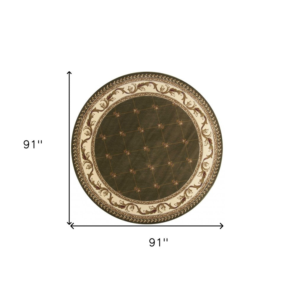 3' X 5' Dark Green Ivory And Brown Floral Vines Area Rug