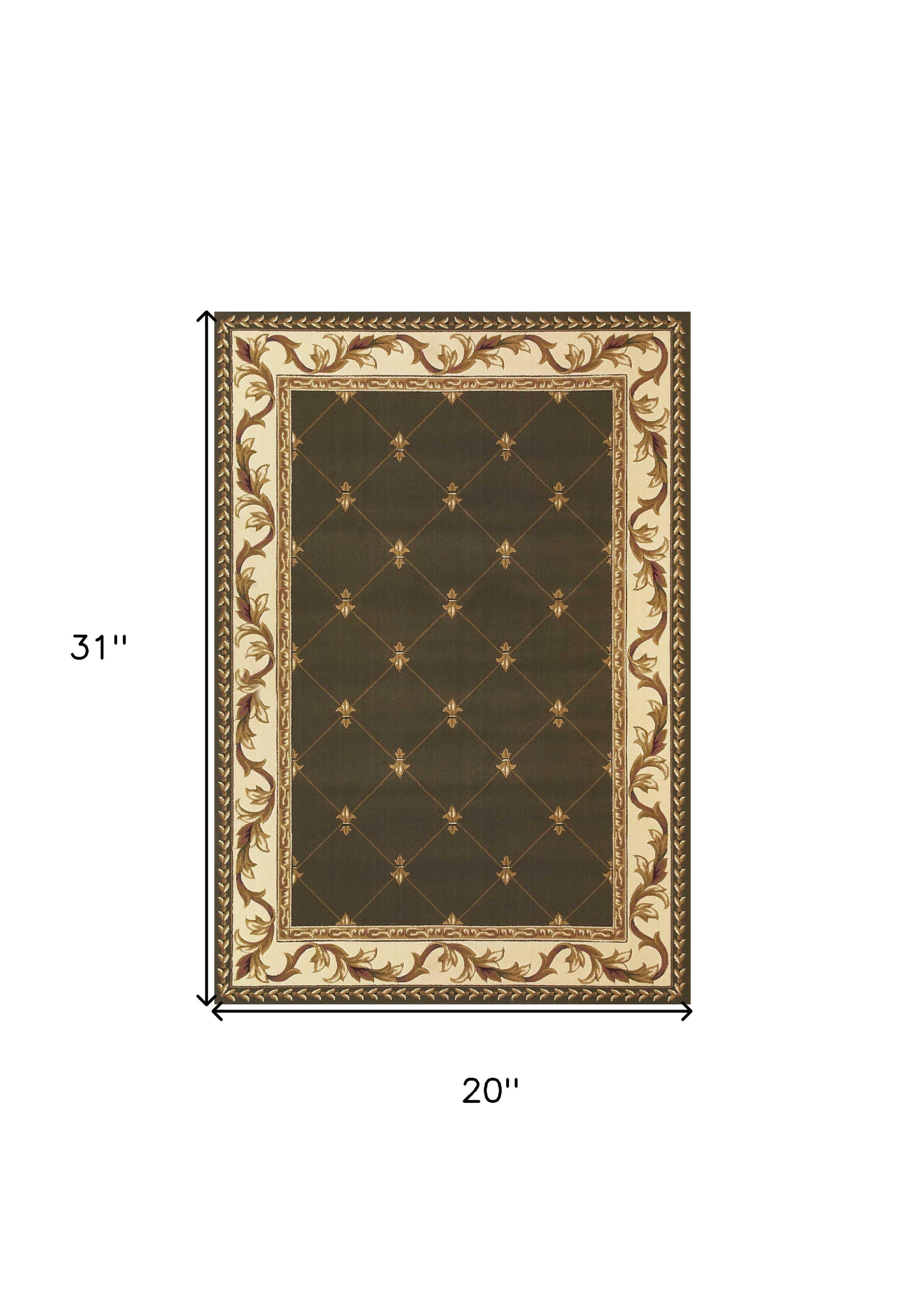 Set an inviting tone in your space with this 3-foot x 5-foot dark green ivory and brown floral vines area rug. Ideal for spaces with kids and pets, this rug is stain resistant to help repel dirt and spilled liquids. Built to last, this rug crafted from polypropylene fibers is known for its durability and long lasting appeal. Rugs are a great way to showcase your style, hide imperfections, warm your home and reduce noise. This smaller sized, traditional styled rug is just what you need for your walkway, bedside, in front of door, cabinet, refrigerator, or chair. 39.00-inch h x 59.00-inch w x 0.50-inch d.